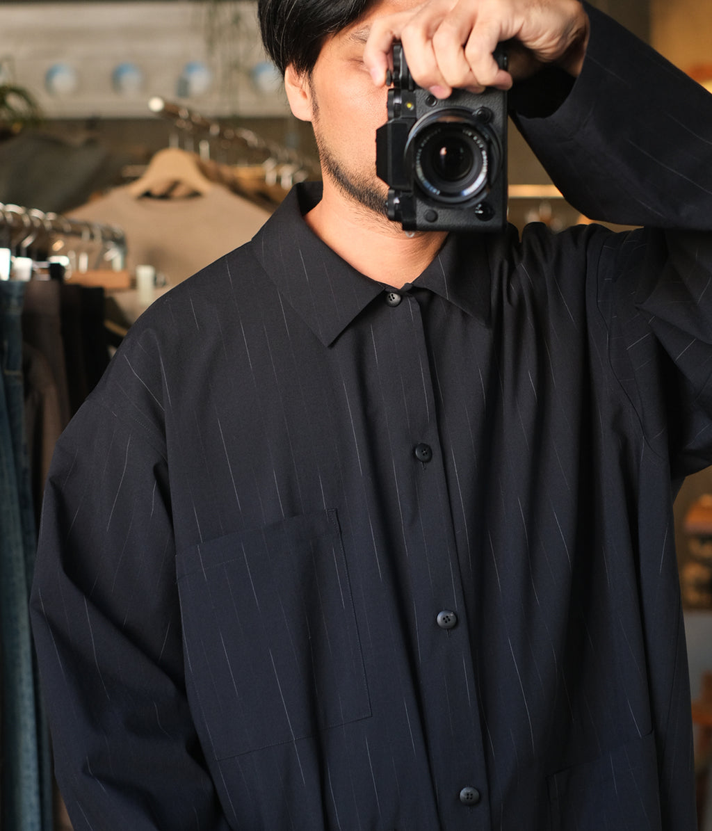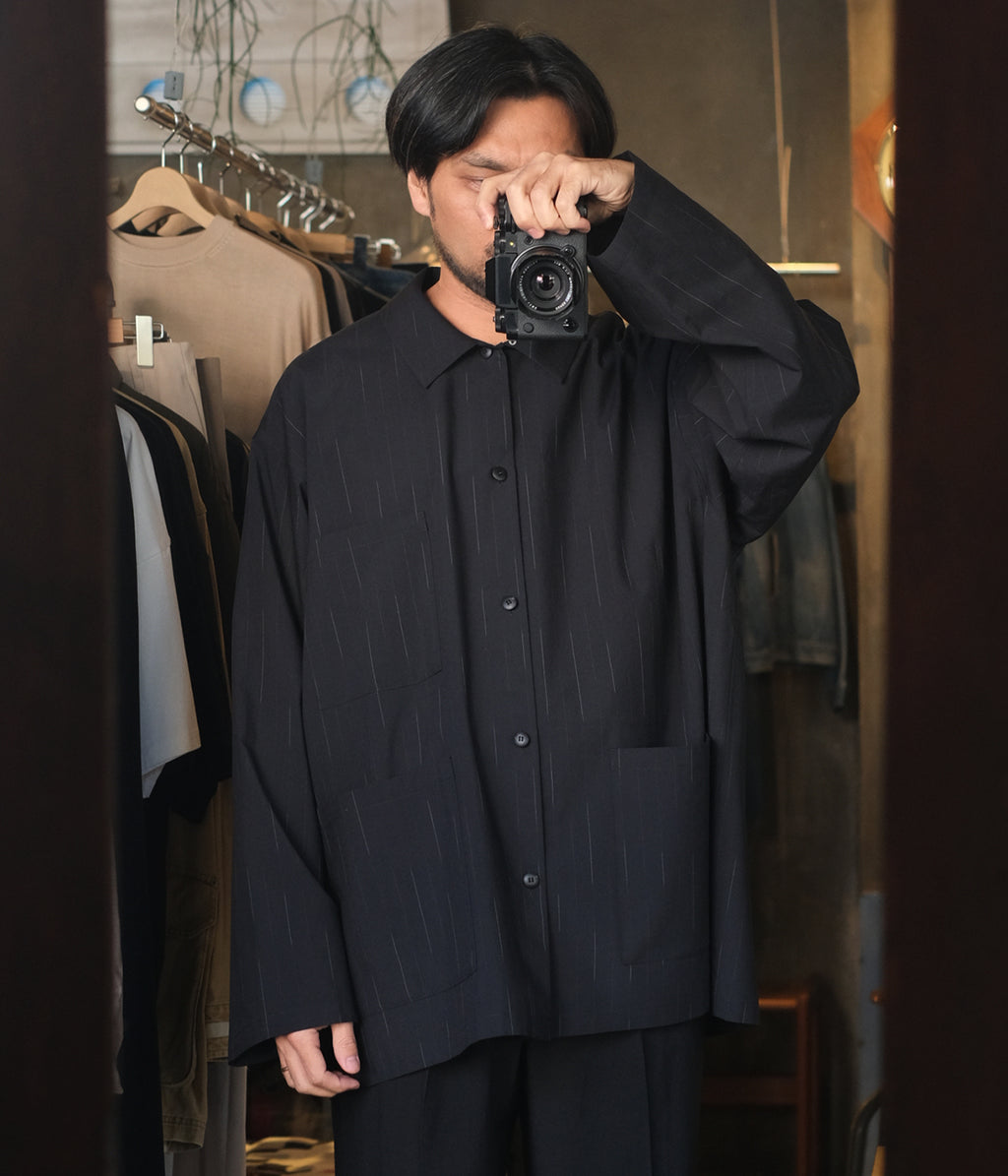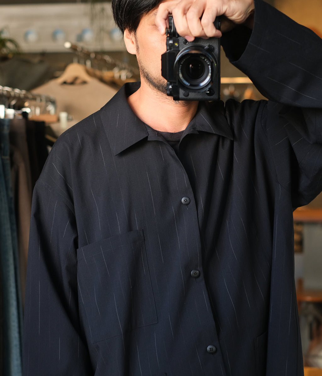 シャツの様なワークジャケットの様な、どこか曖昧なバランス感が特徴。
