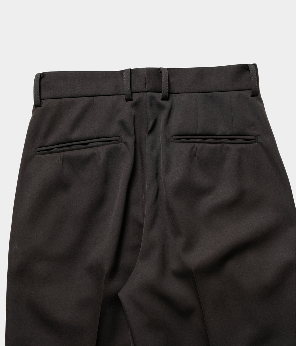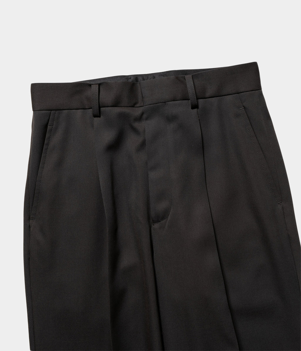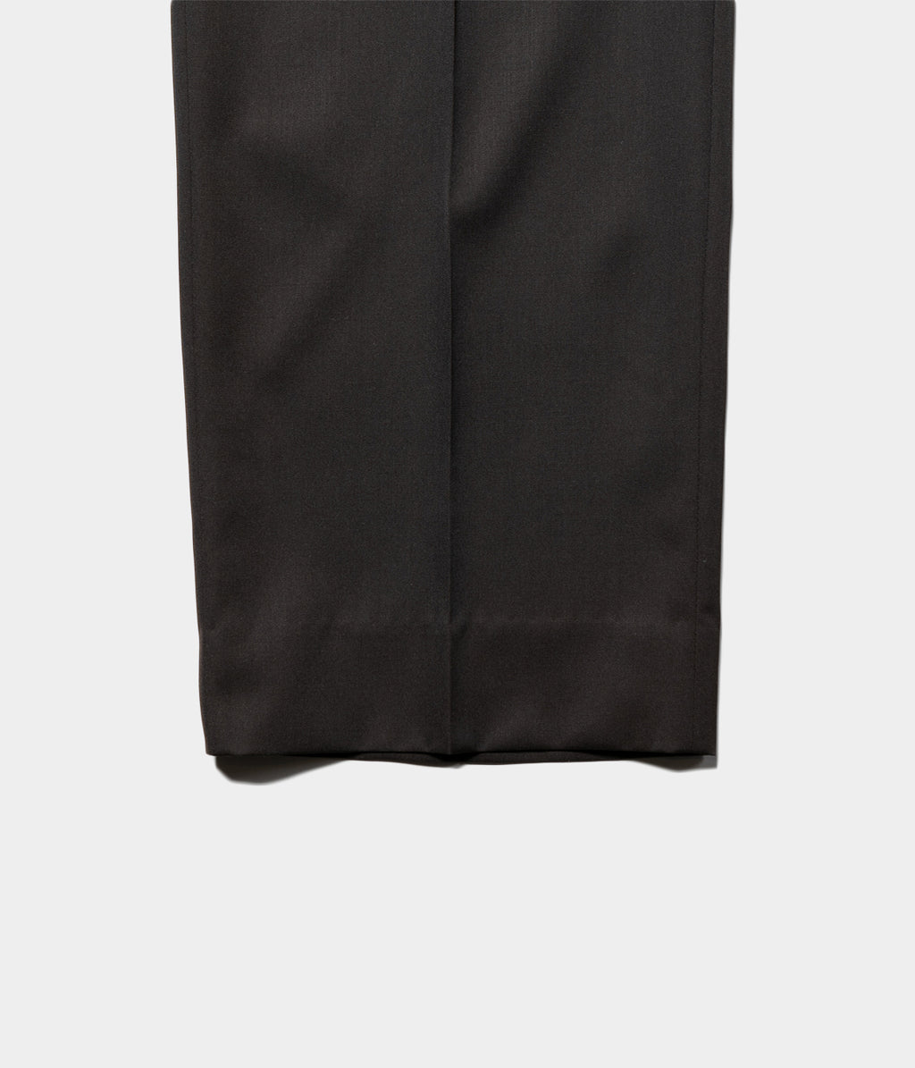 ワタリ幅から裾幅まですっきり目に設定したワンタックトラウザーズ。腰回りはすっきりとしたフィット感になるよう調整し、上品なエレガントなバランスに仕上げている。シルエットは適度なゆとりのストレートシルエット。