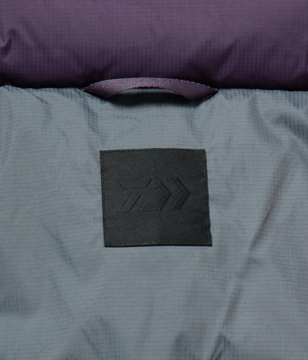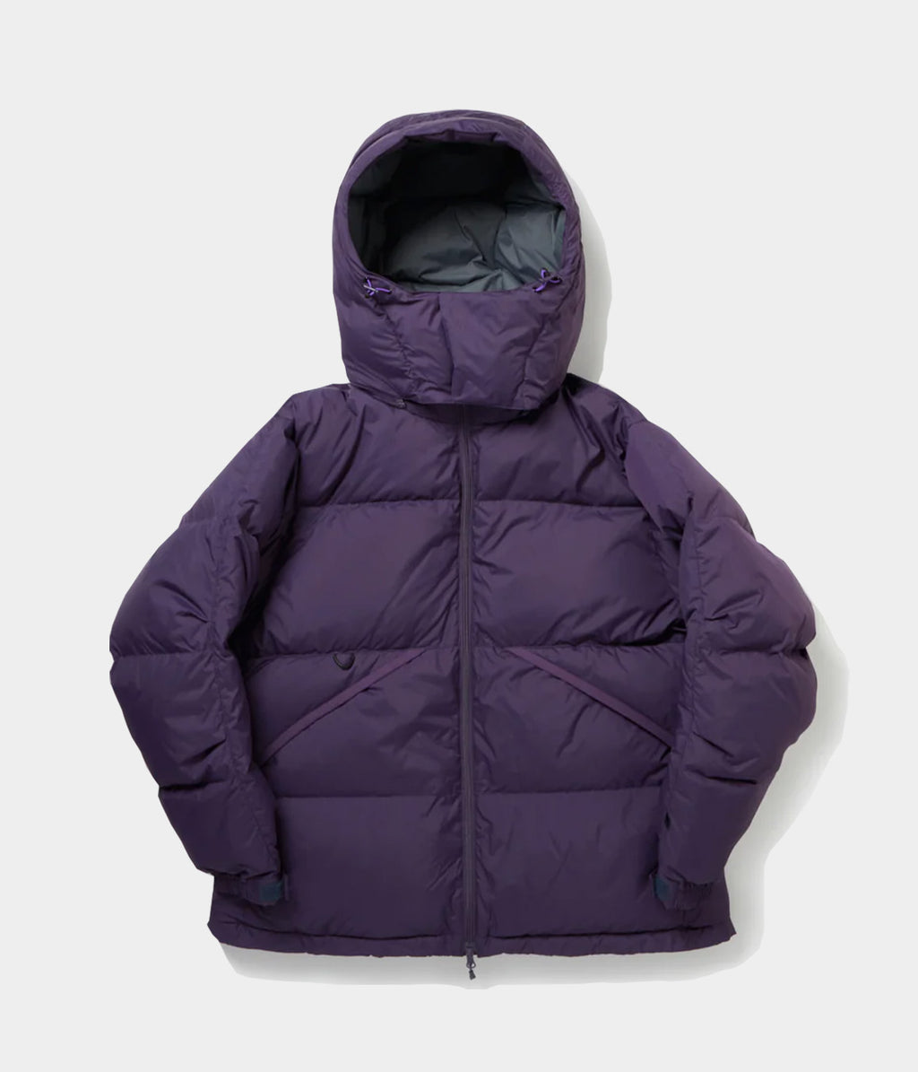 寝袋のような膨らみが特徴のダウンジャケット。シンプルに横ステッチで表現されたベーシックなデザインだが、ハンティングジャケットからインスピレーションを受けデザインしたフロントからサイドにかけて大きくデザインしたフラップポケットが最大の特徴。中には仕切られた2つのポケットが配されている。内側に大小様々なポケットワークを施し、タックルケース、ルアーケース、モバイルなどを収納出来るようデザイン。見た目以上に収納力の高いダウンドジャケット。ミリタリーのディテールでもある前振りの袖がデザインアクセント、アクションプリーツを加え、袖口も調整出来るようにデザイン。釣りの際の可動域を広げ、袖口のもたつきも解消したデザイン。取り外し可能なフードも付属。