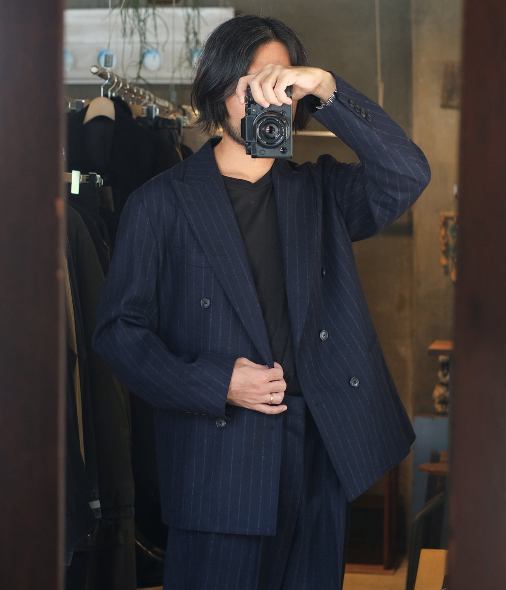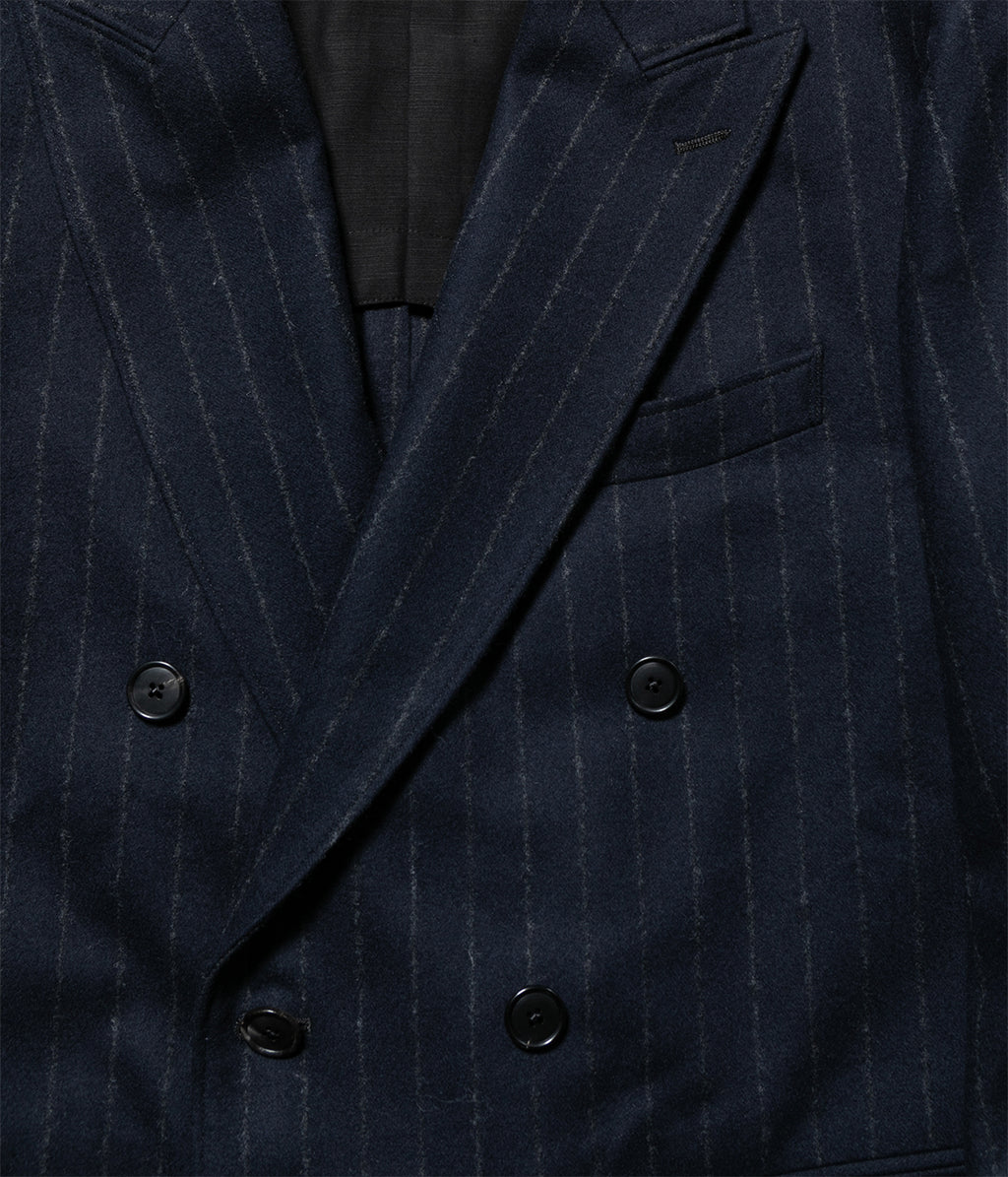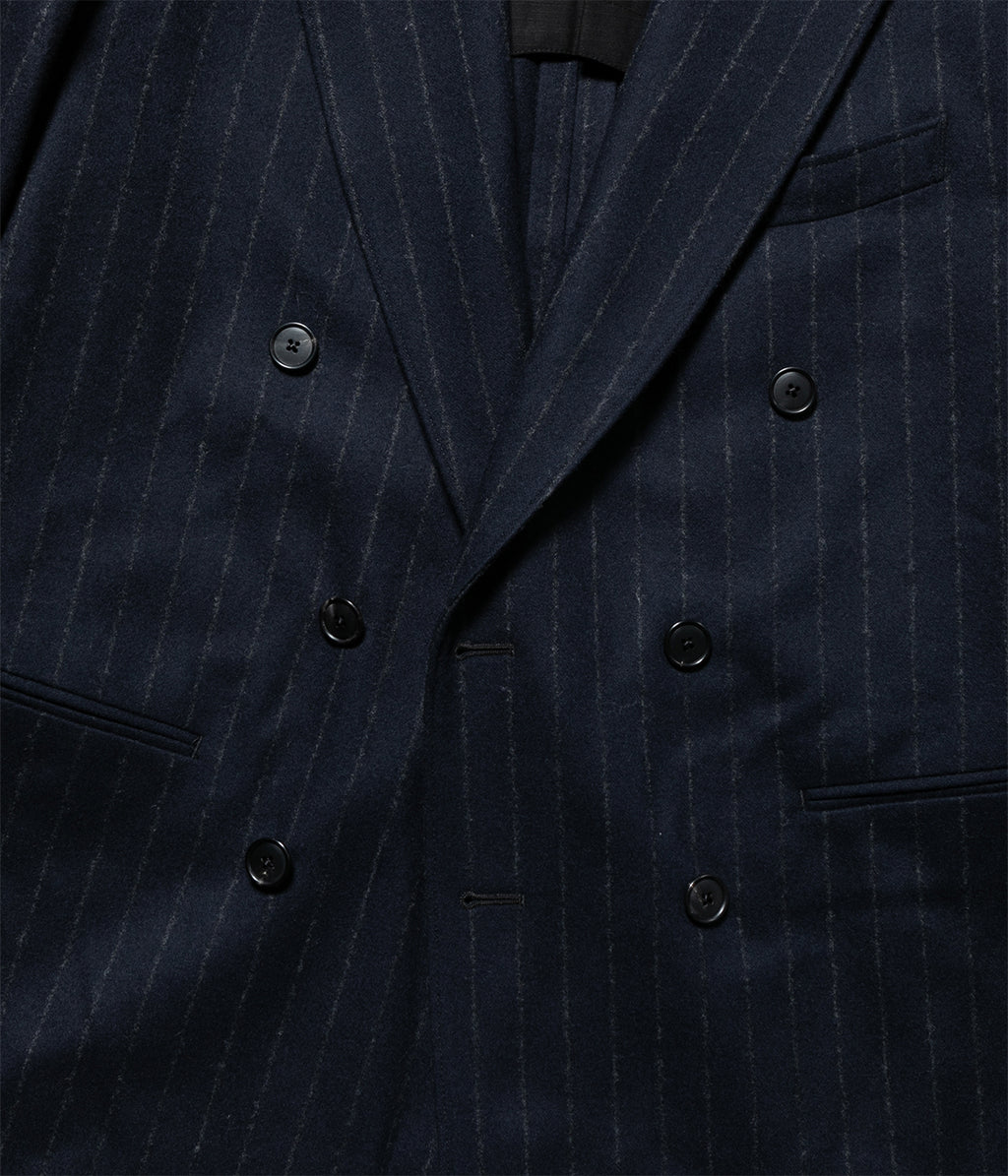 イギリスのSavile clifford生地でチョークストライプのスーツ生地を使用しています。