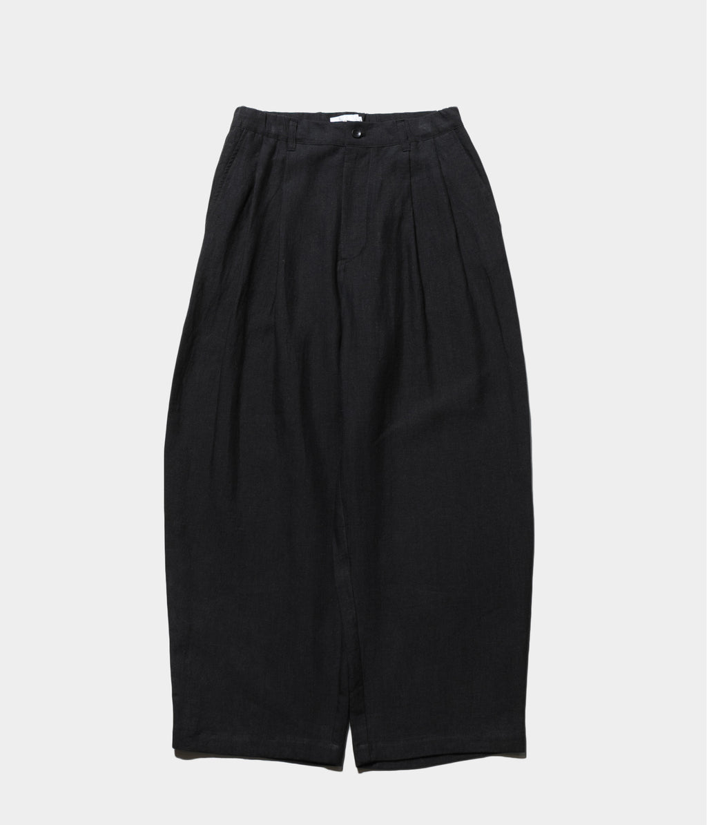 ナチュラルなシワ感のあるリネン素材を使用した太いシルエットのテーパードパンツ。