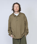 身幅に余裕を持たせたボックスシルエットと、あえて大ぶりに設計した襟のバランスが絶妙な一着です。