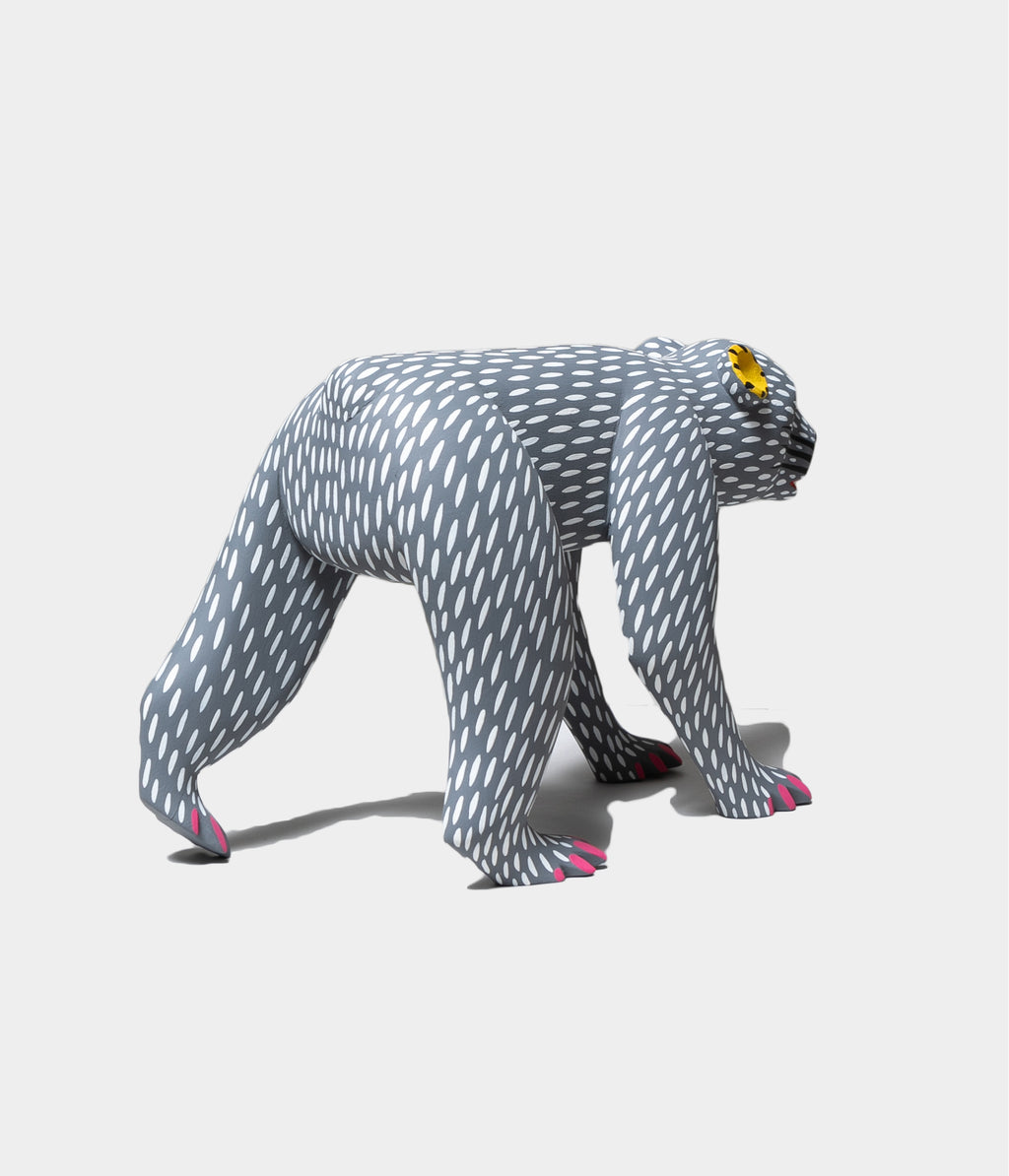 オアハカン ウッド カーヴィング(メキシコ・オアハカ州でつくられる木彫り)の創始者マヌエル ヒメネス(1919-2005)の息子、イサイーアス ヒメネス(1961-)作のクマ。これぞヒメネス スタイルというべき造形と彩色の見事さは、10代の頃から父マヌエルの作品製作を手伝ってきたイサイーアスならでは。