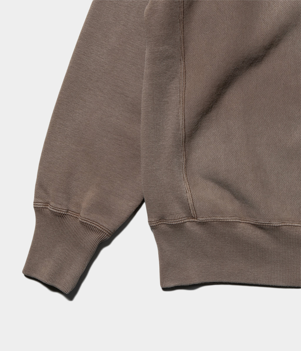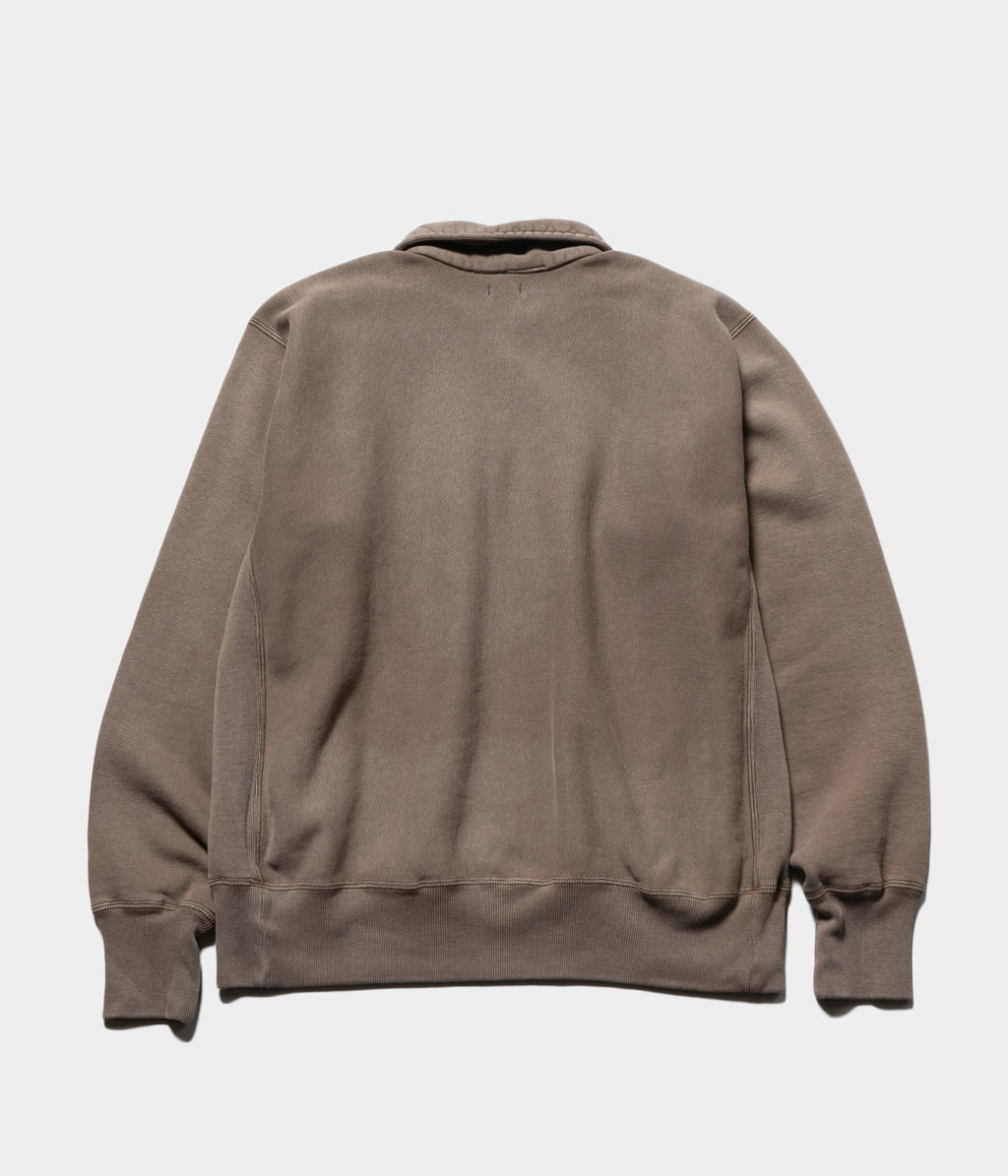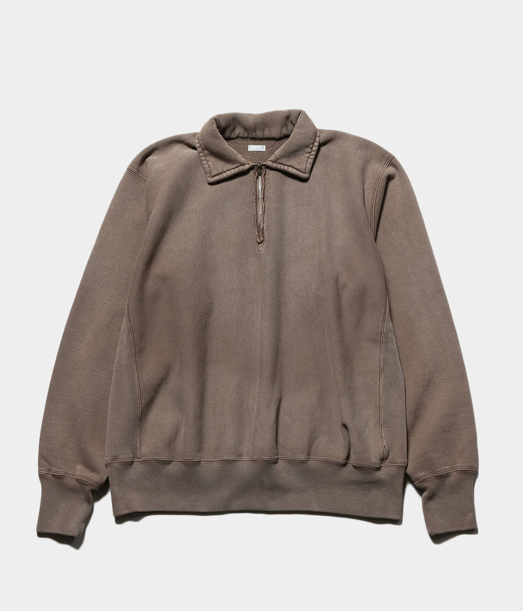 【デザイン】ヴィンテージを踏襲し縫製仕様も忠実に再現したハーフジップスエット。ヴィンテージ感のある短丈で、袖は太くせず適度な太さに設定。インナーにも使いやすいちょうど良いゆとり感で、肩ハギがないヴィンテージのディティールを忠実に再現し丸みのあるシルエットに仕上げた。