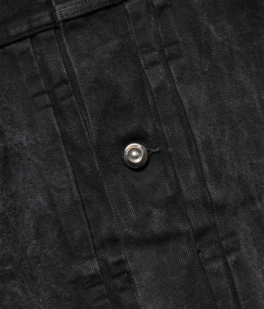 ・ 鉄製のタックボタンとリベットを使用しておりますので、新品の状態でも多少の錆が御座います。また、着用を重ねる度により錆びて経年変化致します。洗濯及びご着用の際は、色移りに十分ご注意下さい。