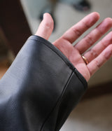 【素材】表地:生後3~6ヶ月以内のカーフレザーを使用。カーフ特有でもある組織が細かく締まりのある質感、表情ある繊細なシボ感に加えて、革の脂分が通常よりも少なくても従来のソフトさを出すことが出来た軽量カーフ。表面は光沢を抑えたマット仕上げで、上品でありながら男らしい表情が特徴。