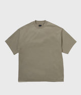 ドライタッチなポリエステルスパン糸を表に、裏には伸縮性のあるポリエステル糸をプレーティングすることで目がつまった、ハリ感のあるヘビーウェイトなTシャツ生地です。