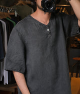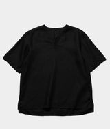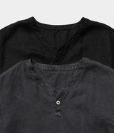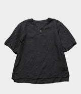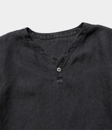 生地は遠州、播州、尾州といった日本各地の機械織りの産地をはじめ、インド、ラオスといったアジア圏の手織りのものを主に使用。 デザイナーが可能な限り直接機場に赴き、独自の素材開発にも取り組んでいます。 また縫製糸には主に綿糸を、織りネーム、品質表示、ボタン等の付属品には天然素材を用い、国内の提携工場で縫製しています。 染色には通常の染料の他、草木や藍、虫、鉱物を使用し、その不均一な色の移り変わりも美しさとして捉えています。