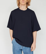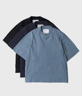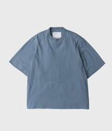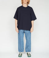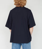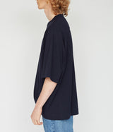 空坊糸を使用したドライな風合いが特徴のS/Sボックスティー。無駄を削ぎ落としたミニマルなデザインながら、袖を前振りでつけるなど、身体にフィットする立体的な構造で仕上げ、着心地の良さを追求しました。度々リリースしている定番モデルですが、今シーズンは一枚着からインナー使いまでスタイリングに奥行きを持たせたラインナップを展開します。