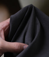 和歌山のニッターさんに編み上げて頂いたオリジナルのSUPER ZERO度詰天竺。40/1SUPER ZERO糸を2本引き揃えて極限まで超高密度に編み上げています。超高密度に編み上げた生地にも関わらず、SUPER ZERO糸を用いる事により、仕上がりでは解撚されており、ほぼ糸に撚りが入っていない生地に仕上がっています。その為、巷の高密度生地と比較して、高密度で有りながらも生地が硬くならず、高密度由来のコシを残しながらも柔らかく、より多くの空気を含んでおり、軽やかでふくらみ感に富みます。また風合いの特徴としてヴィンテージの様なドライなタッチに仕上がっておりますが、これは糸を解撚する過程で高温で長時間湯繰りする事によって、脱脂される事による副産的に得られる風合いになります。着用と洗いを重ねる度に、解撚された糸が更に解れ、ヴィンテージの様な経年変化が楽しめます。