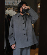 クラシックなワークウェアをインスピレーションに制作したシンプルなチョアジャケット。色々な小物が入れ易く持ち運びし易い様に、全てのポケットを大きくデザインしました。襟を立てて着用する事が可能です。