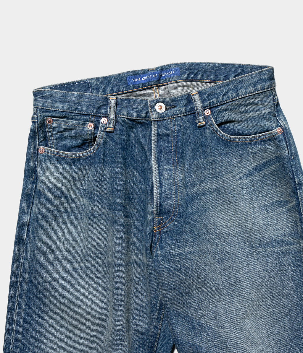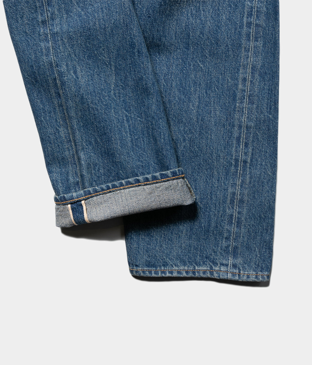 隠しリベットやエイジング加工などXXモデルを再現しながら、シルエットはやや強めのテーパードをかけてすっきりとした印象に仕上げています。
