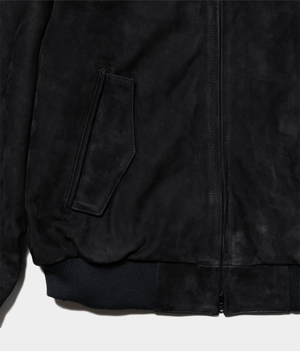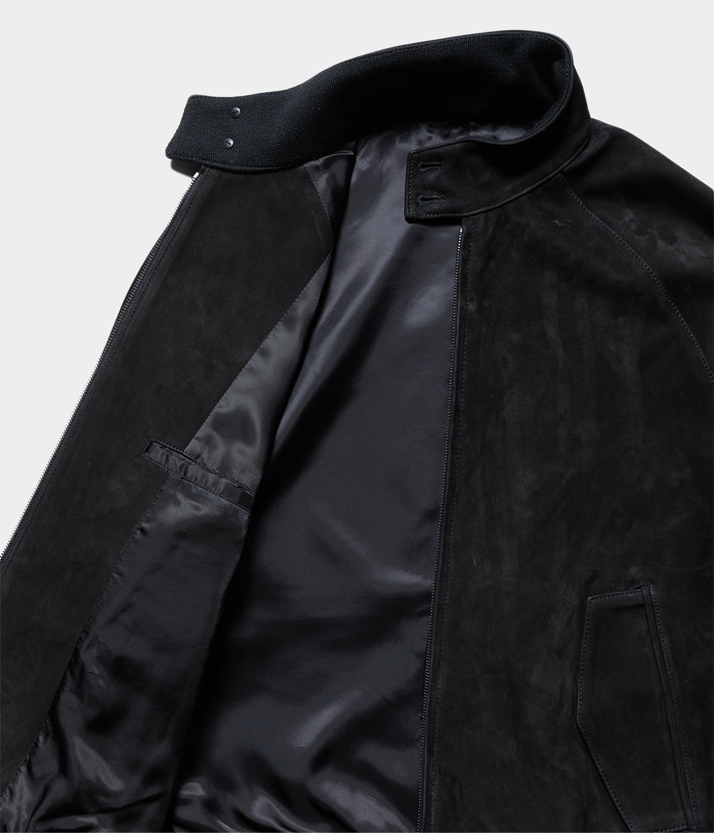 カウヌバックを使用したスウィングトップジャケット。カウヌバックのきめ細かい美しい表情を活かし、極力ミニマルな方向性で製作。