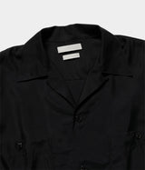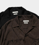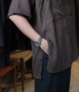 양가슴 포켓의 오픈 컬러 셔츠. 버튼은 특징적인 삼각 조개 버튼을 사용.