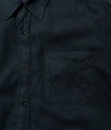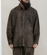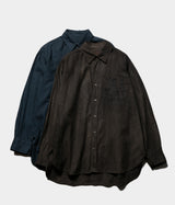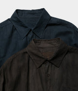 코튼 린넨의 브로큰 트일 로 제작 한 레귤러 컬러 의 밀리터 리드리스 셔츠 . 감시 염색 , 수염 염색 버전. 오래된 밀리터리 셔츠를 모티브 로 디자인한 드레스 셔츠 . 품위있는 패턴 메이킹 으로 있으면서도 , 크게 드롭한 숄더 라인, 느긋하게 넓은 품 , 힘이 빠진 루즈한 사이즈감이 특징. 처음 에는 조금 딱딱 하지만 착용을 거듭 씻을 때마다 점점 신체 에 익숙해 부드러워 지고 유일무이 의 경년 변화를 즐길 자신만의 한 벌로 자랍니다 . 셔츠 전업 공장 에서 매우 세밀한 운침 으로 봉제하고 있습니다. 가슴 포켓 포함.