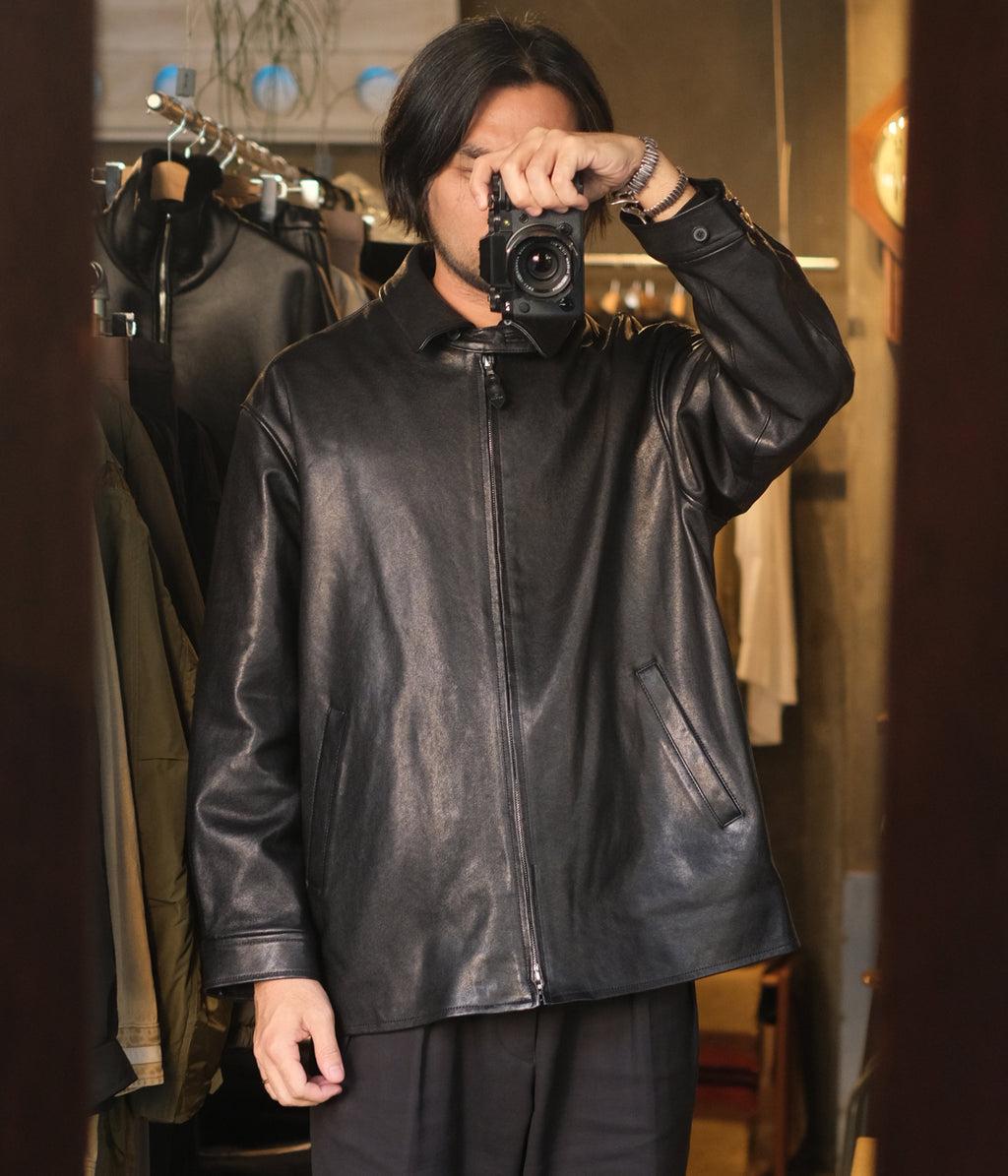 양고기 가죽( 양가죽 )을 사용한 느긋한 사이징 재킷입니다.