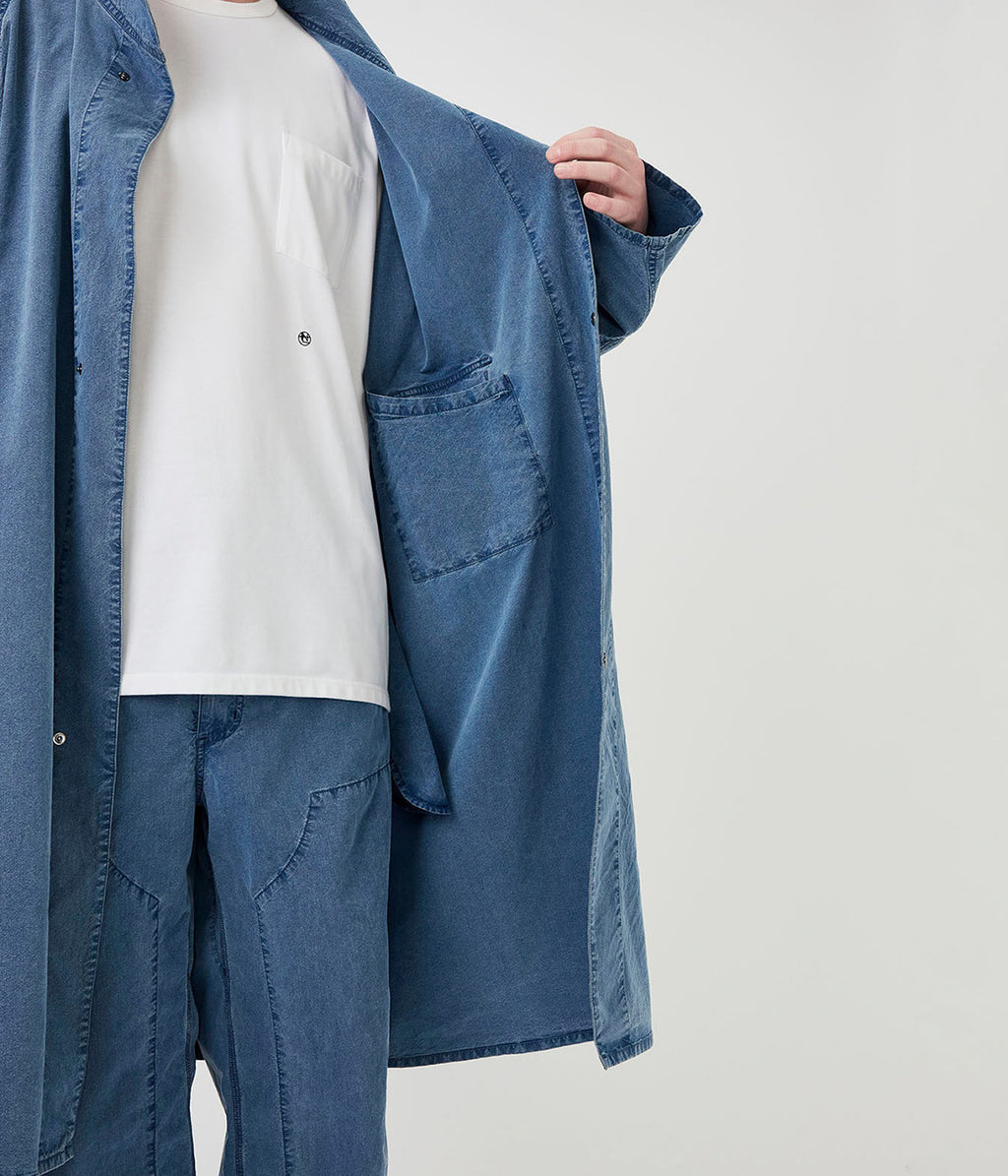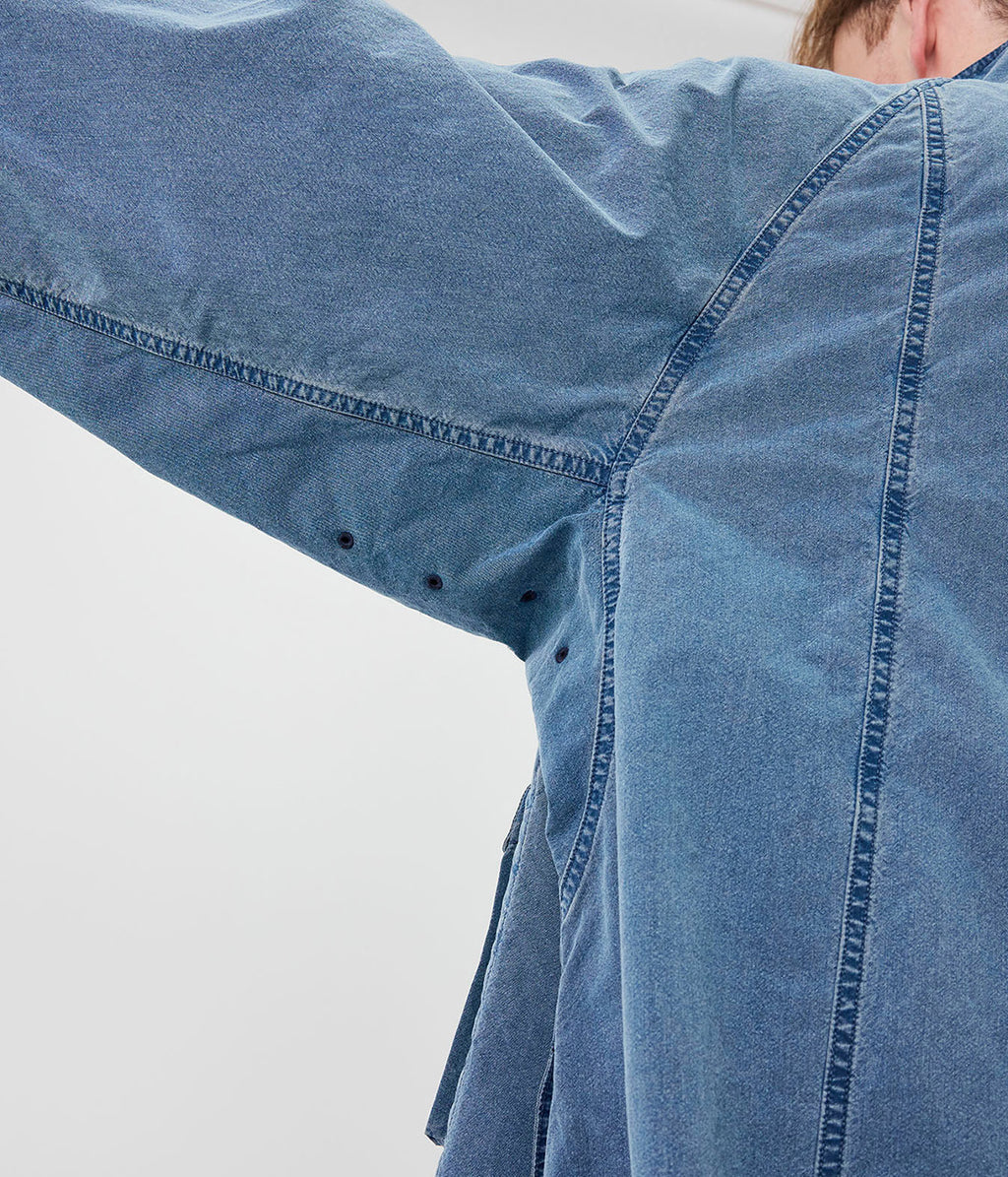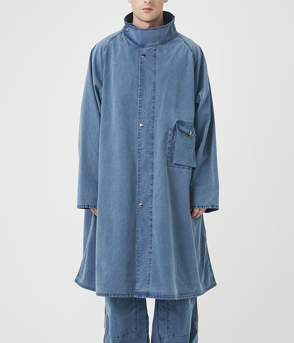 ・코튼 나일론 인디고 웨더를 사용한 필드 코트.