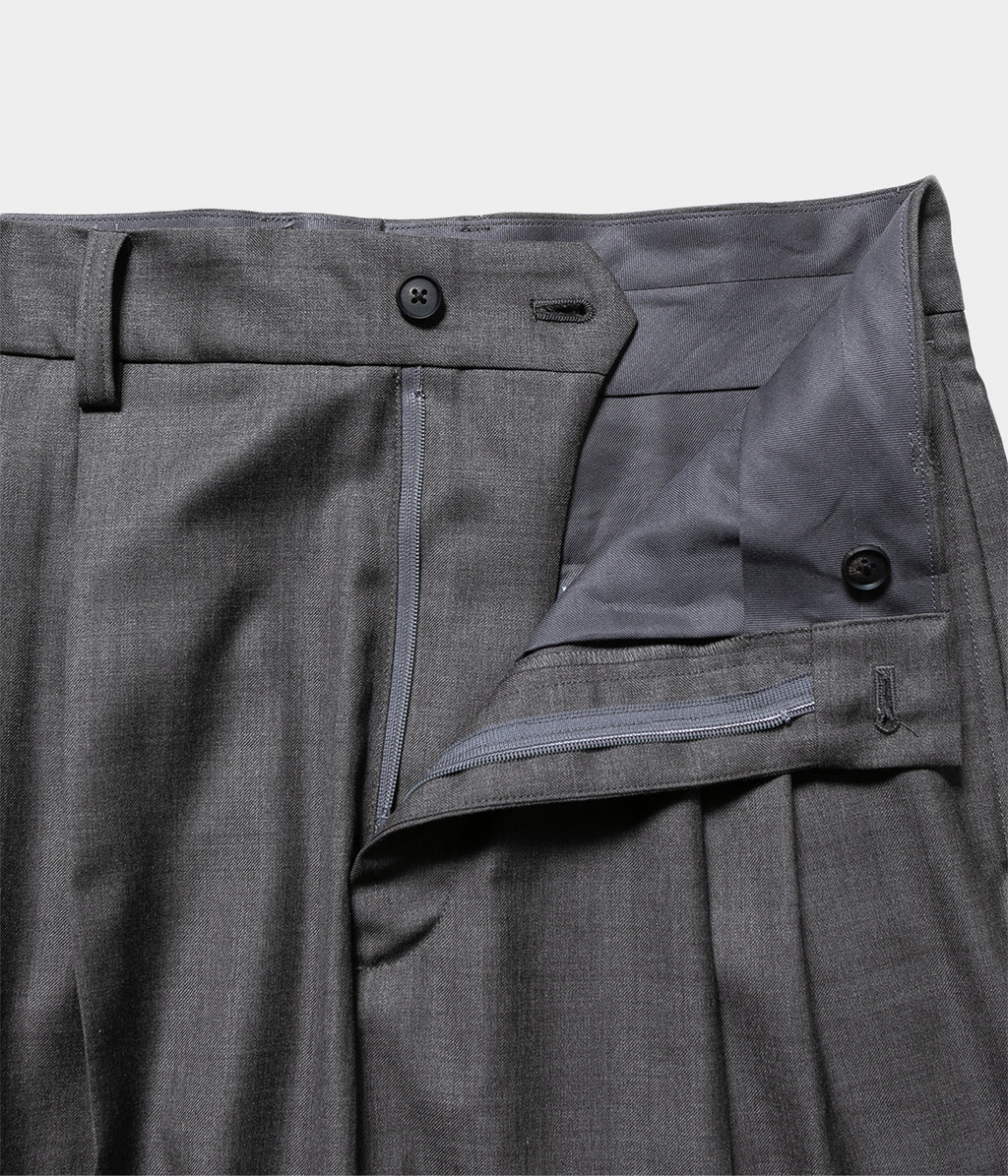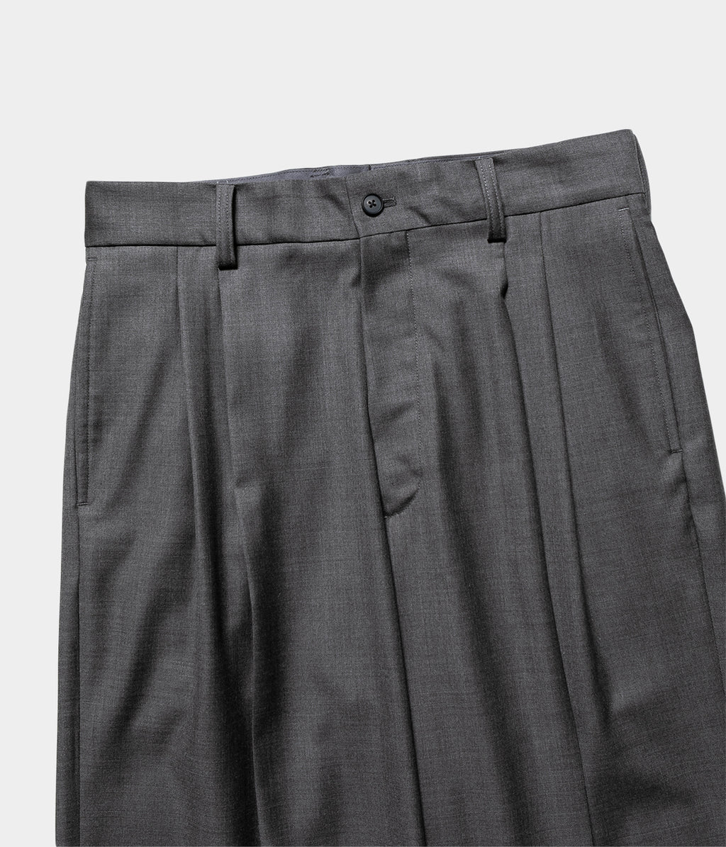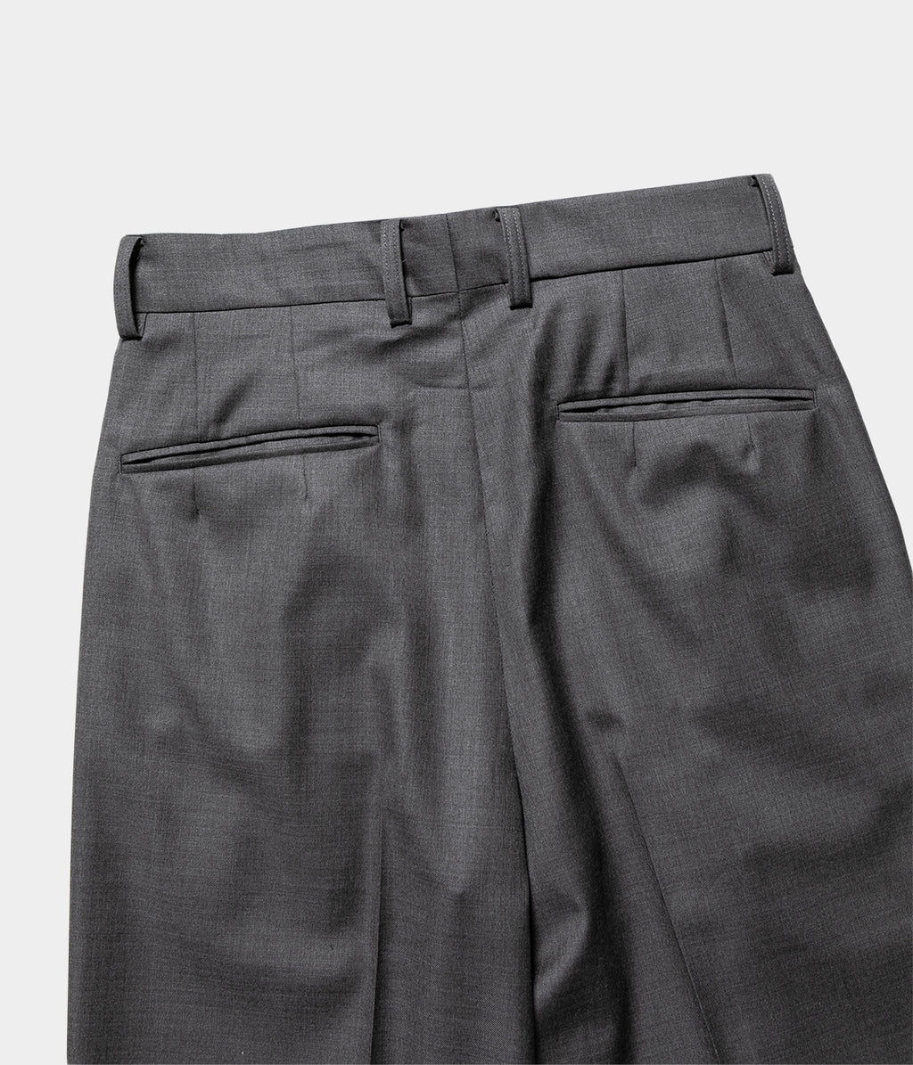 전체 폭에서 밑단 폭까지 와이드로 설정한 투택 트라우저즈. 허리둘레는 깔끔한 피트감이 되도록 조정해, 와이드인 실루엣이면서 품위있는, 우아한 밸런스로 완성되고 있다.