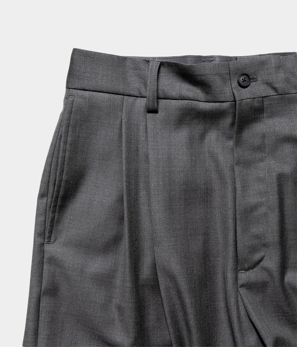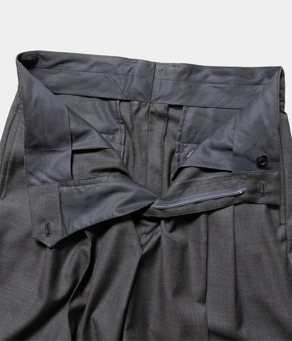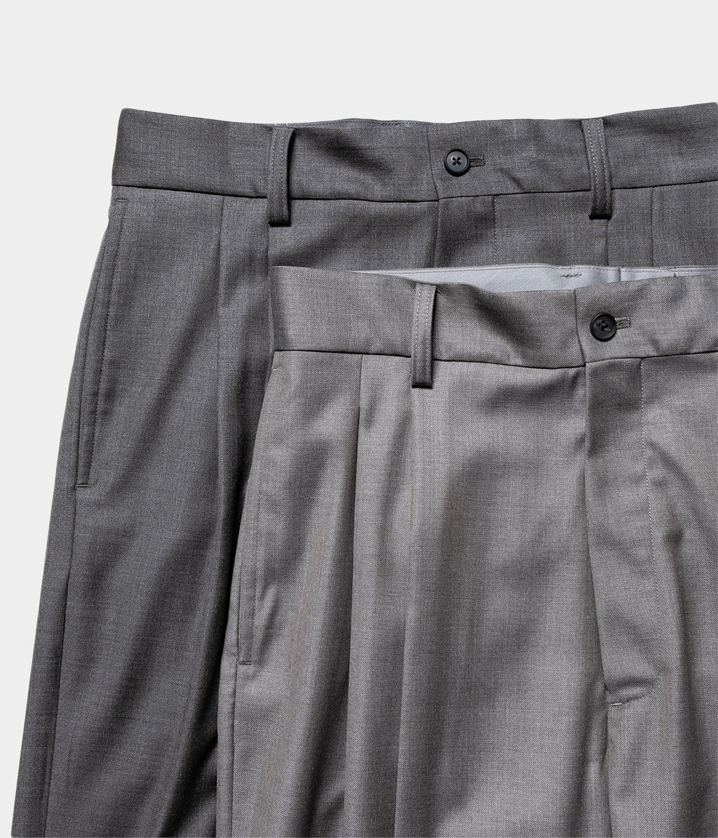 전체 폭에서 밑단 폭까지 와이드로 설정한 투택 트라우저즈. 허리둘레는 깔끔한 피트감이 되도록 조정해, 와이드인 실루엣이면서 품위있는, 우아한 밸런스로 완성되고 있다.