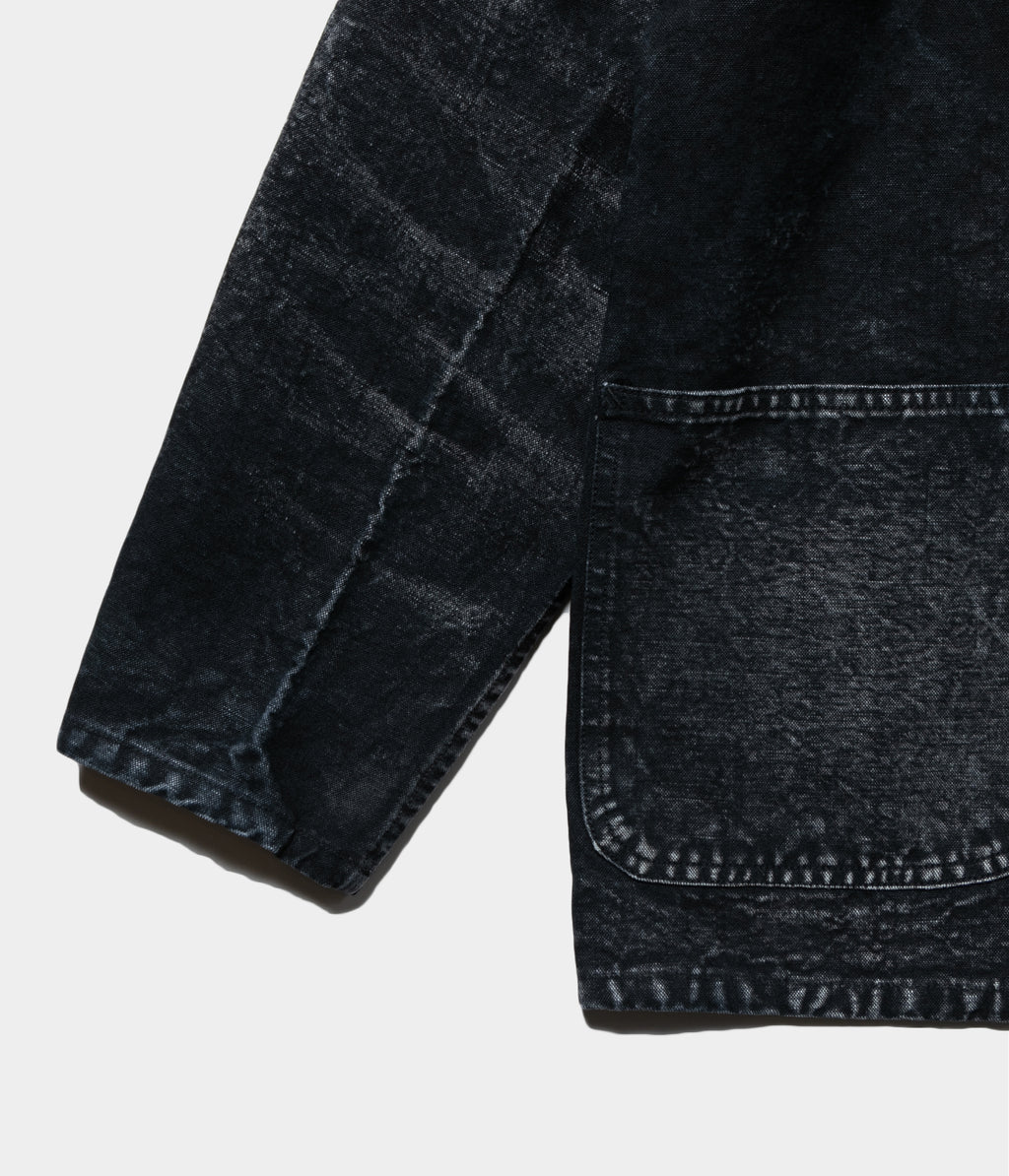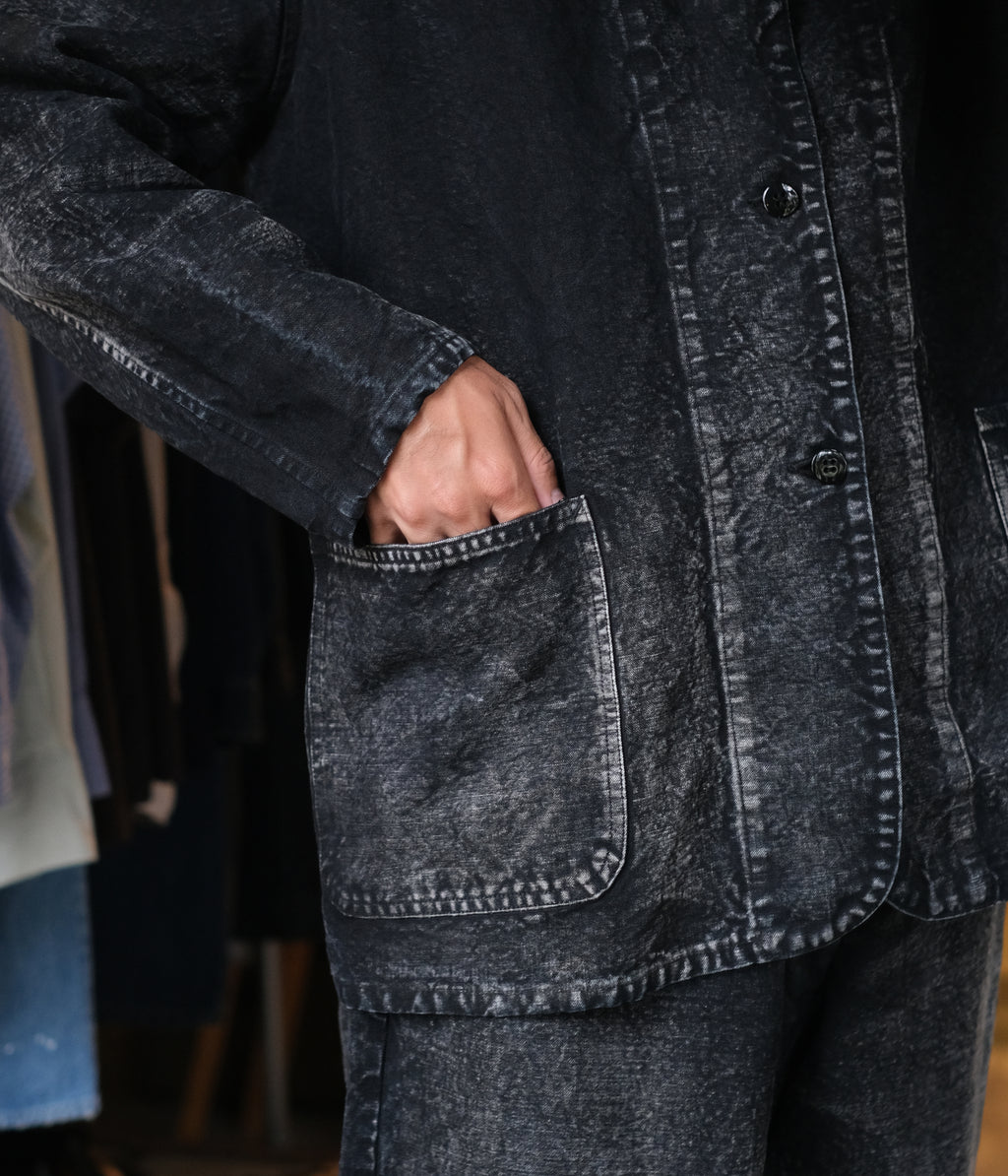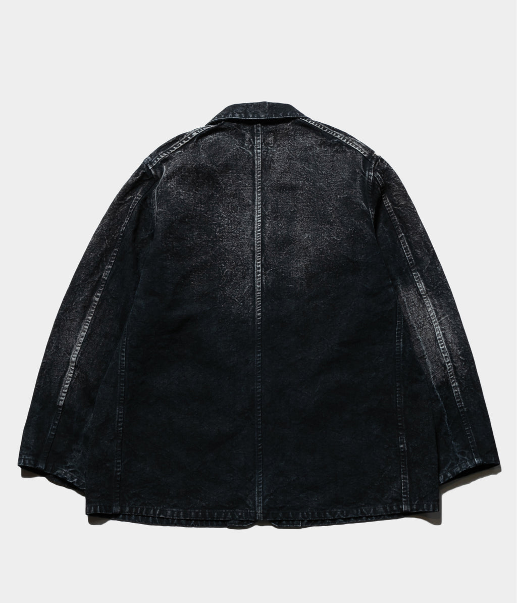 빈티지 워크 재킷을 모델로 했지만, 실루엣은 현대적으로 약간 여유롭다. 같은 소재의 팬츠와 세트업 스타일로 입는 것도 추천한다.