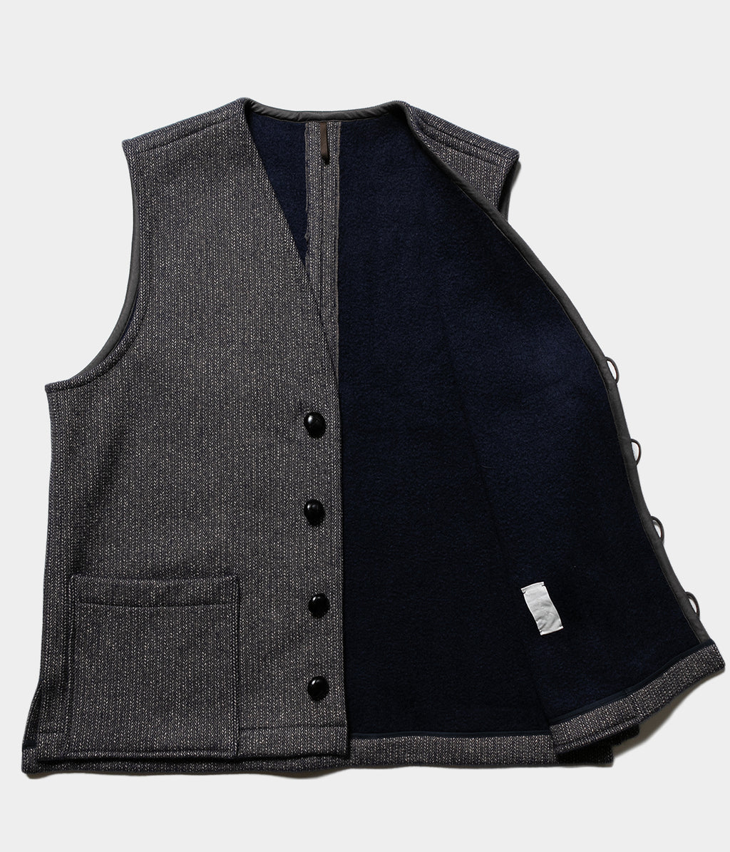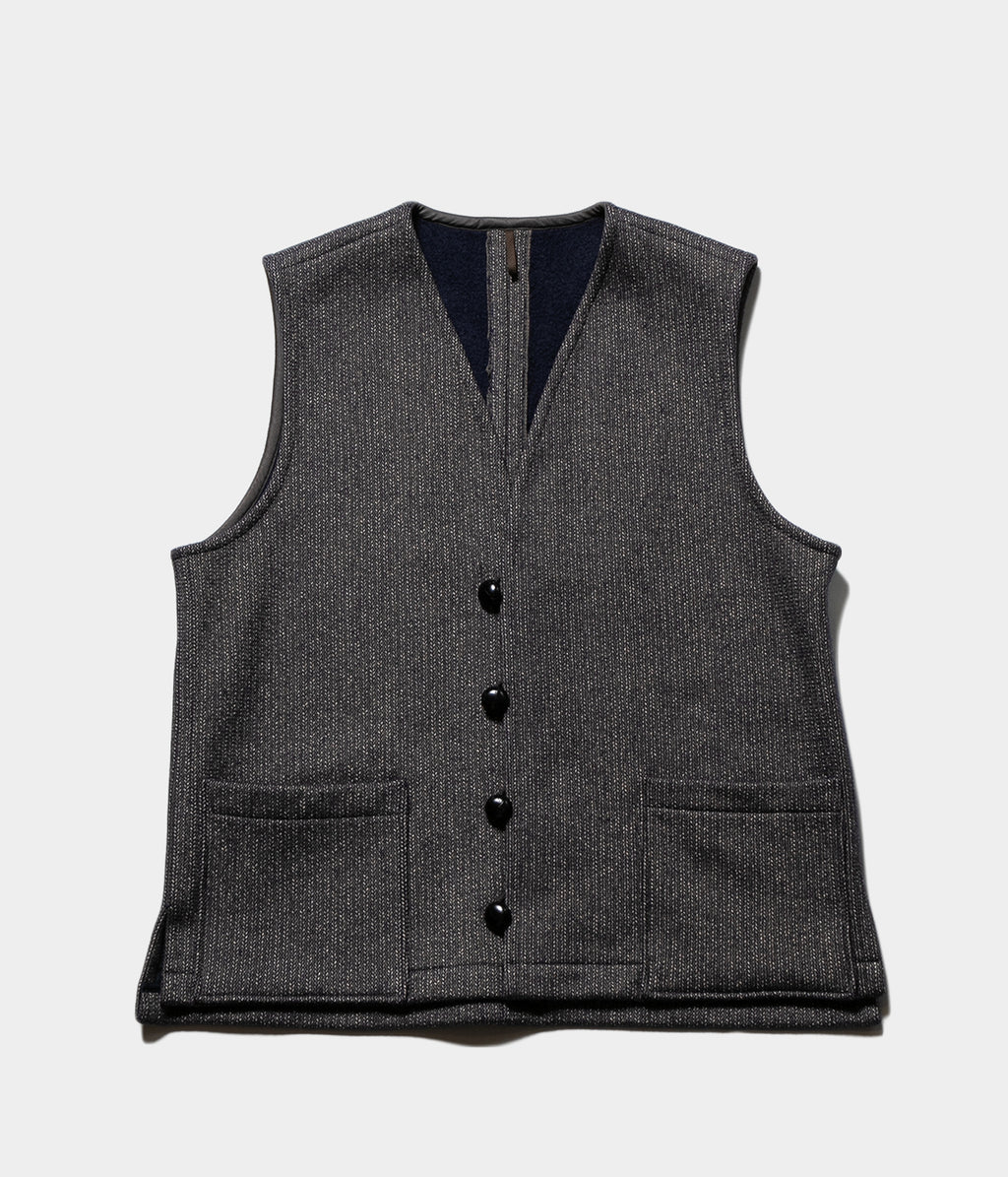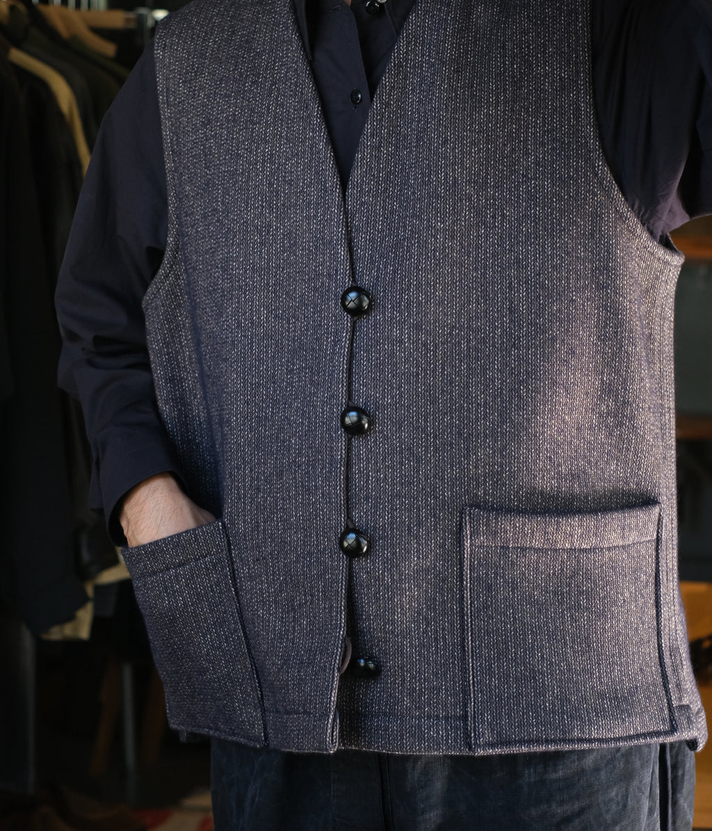 빈티지의 치마요 베스트에 착상을 얻어, 현대의 스타일에 맞도록 사이징이나 데티르를 재구축한, 오리지날의 베스트.