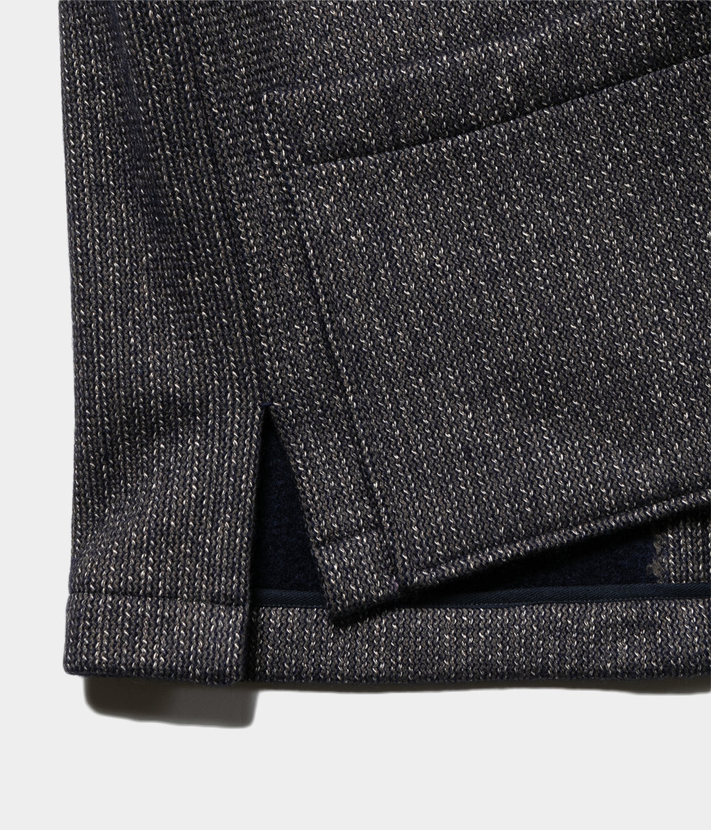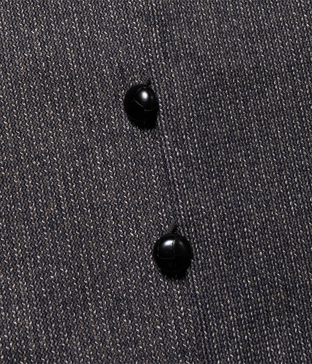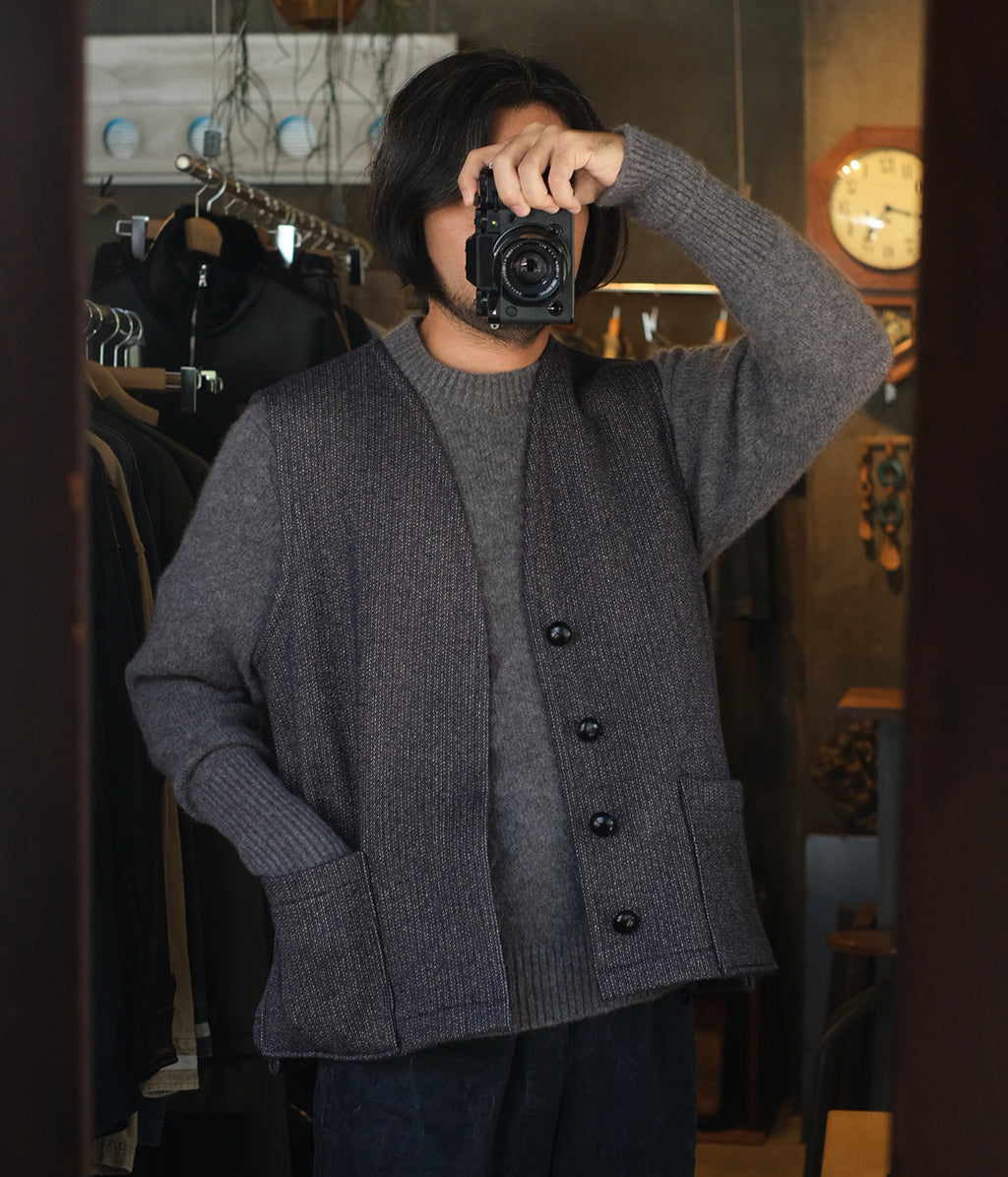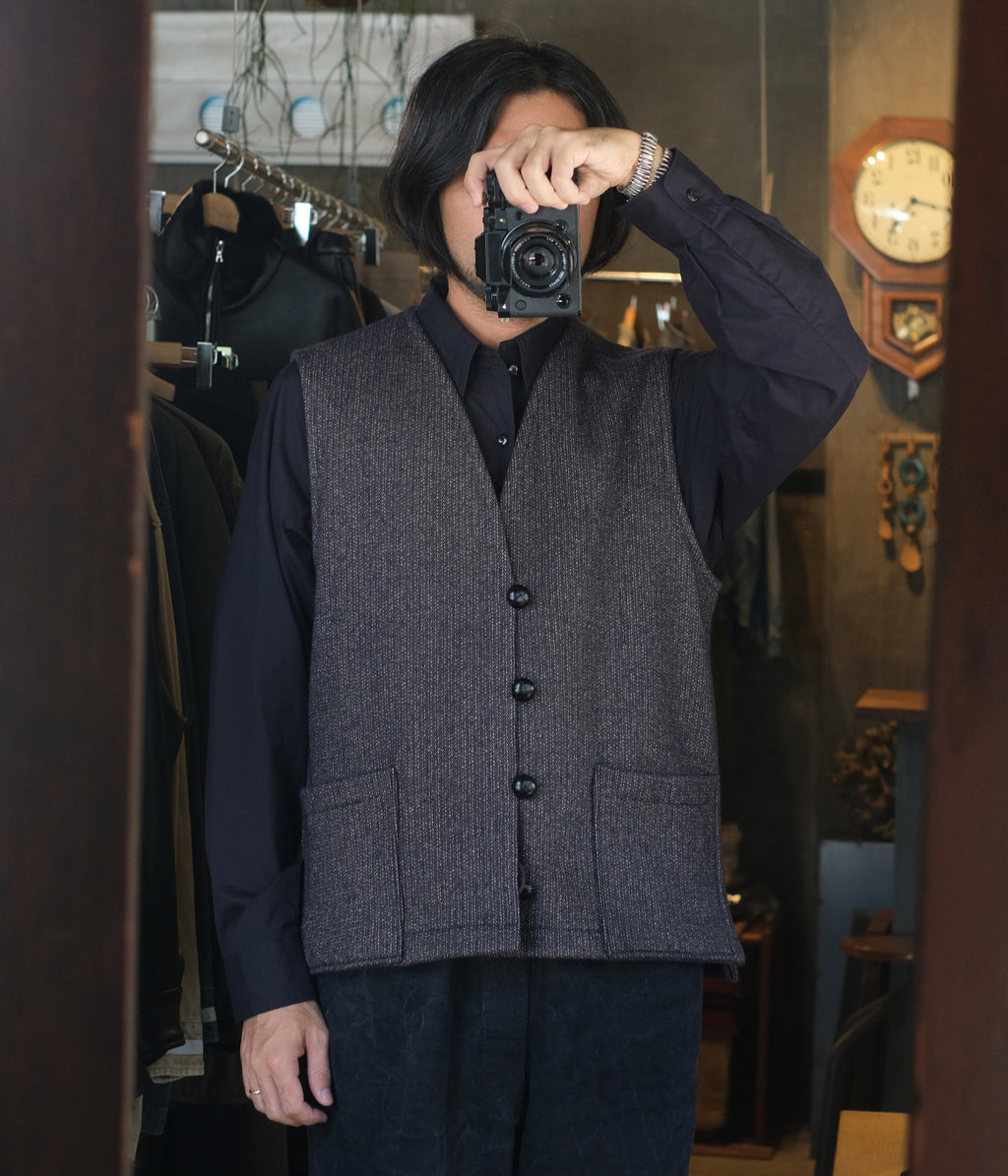 창고에서 수십 년 동안 자고 있던, 어떤 직물 메이커의 시작품이라고 생각되는 울 100% 의 Salt Pepper 천. 그레이와 네이비의 목사를 이용해 짠 올려져, 울 특유의 통통한 부풀어 오름과, 낡은 좋은 천으로 볼 수 있는 제대로 된 착용감이 공존한 표정 풍부한 소재입니다. 오랜 세월을 거쳐도 쇠퇴하지 않는 존재감과 빈티지의 공기를 입은 특별한 원단입니다.