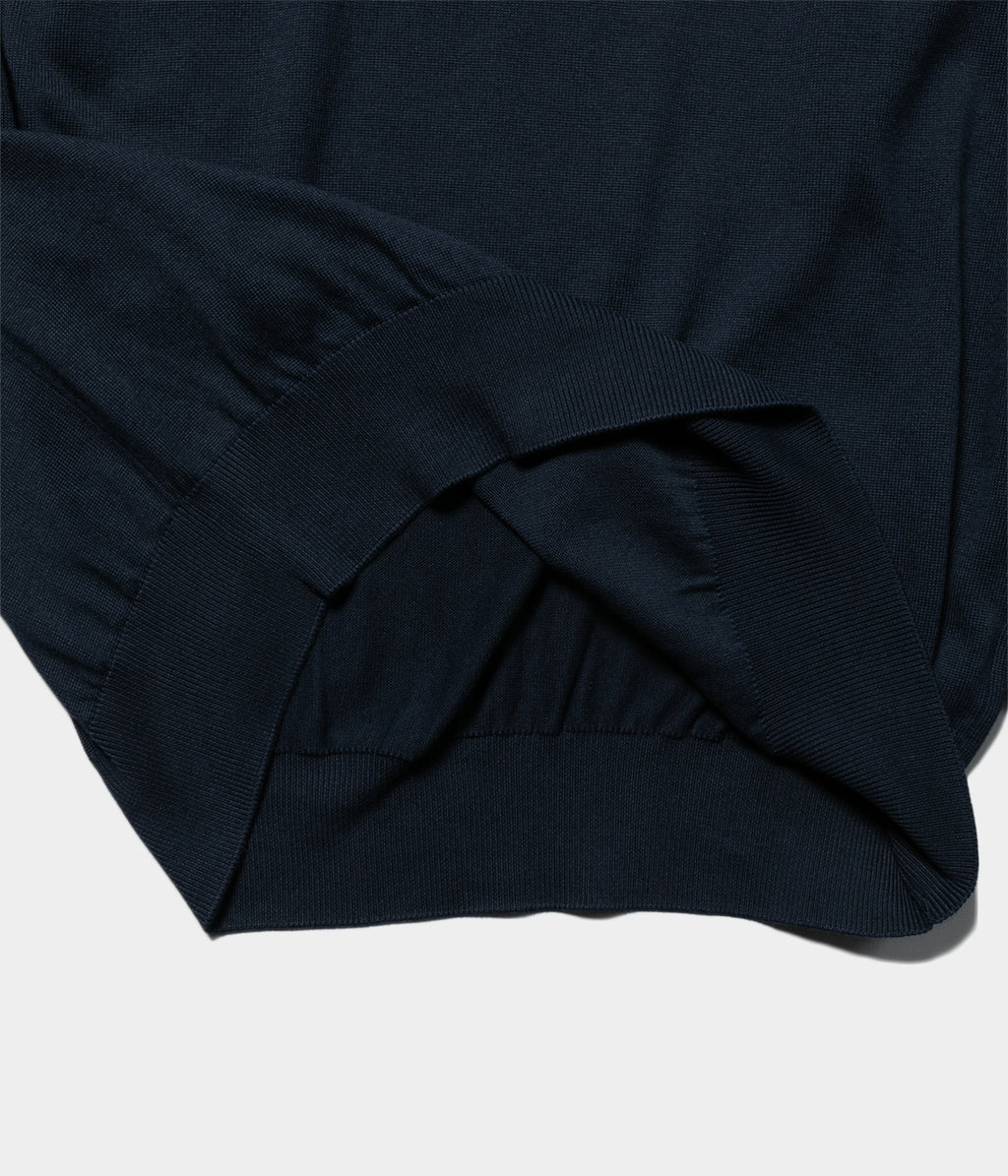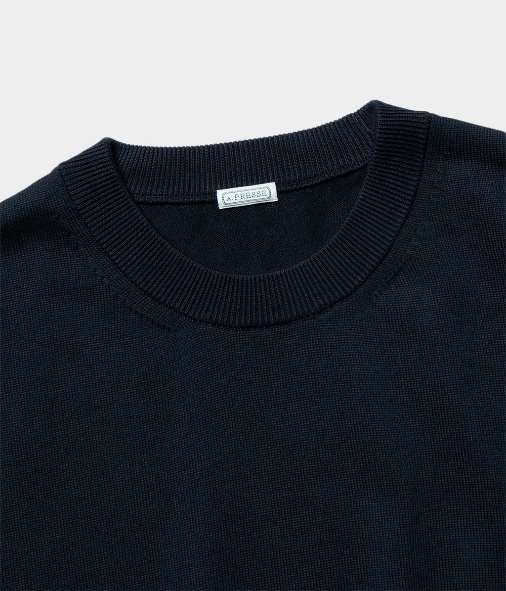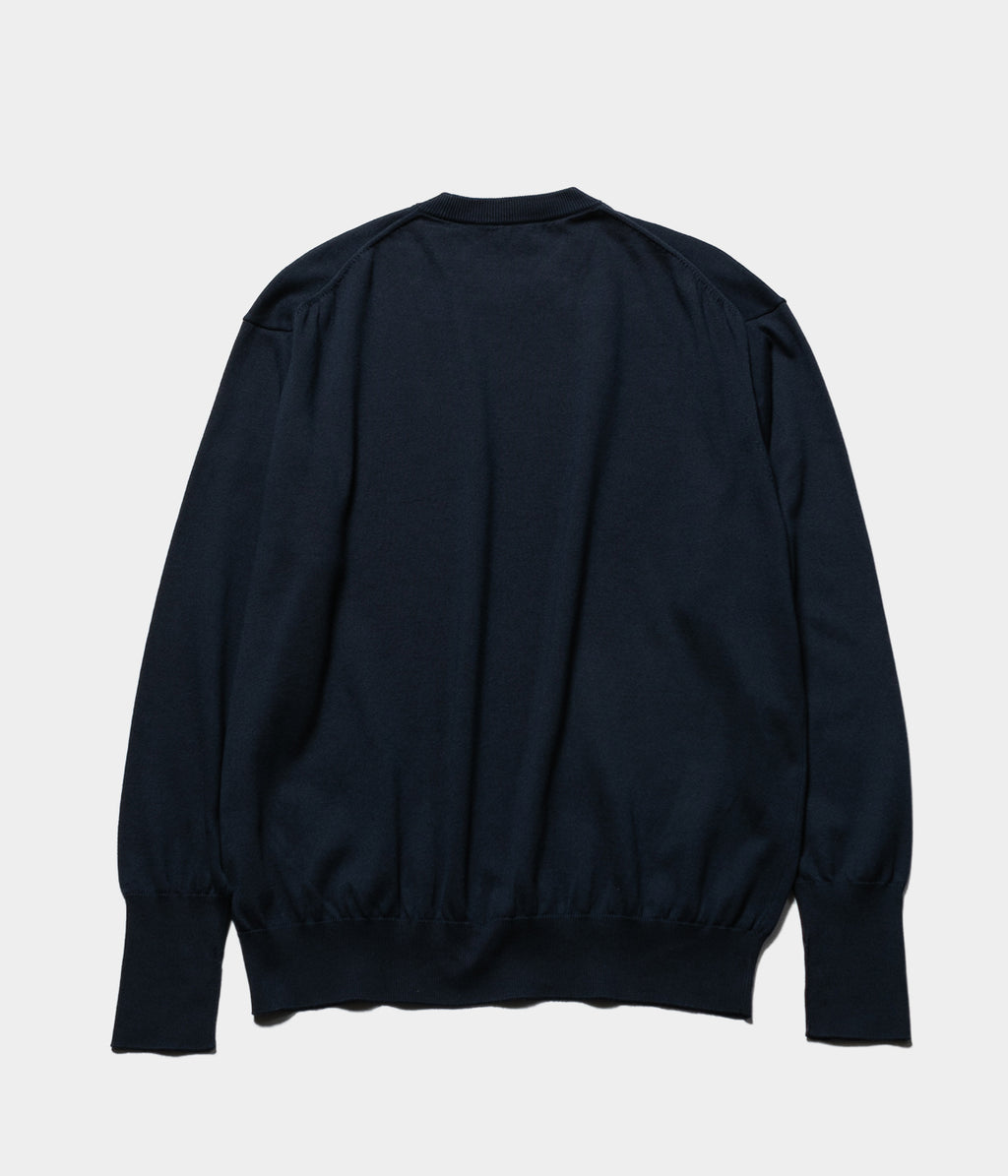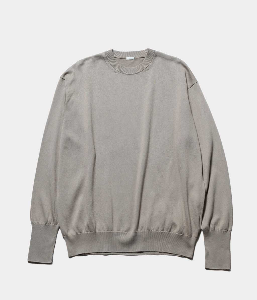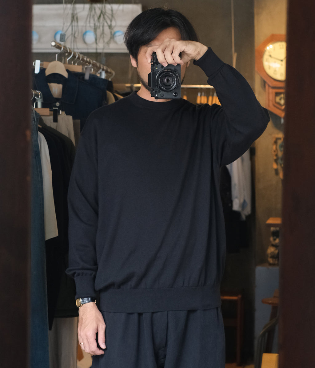 【デザイン】カットソーのロンTやスウェットの様にカジュアルにも、ハイゲージニットの様にクロージングスタイルにも合わせることが出来るクルーネックニット。
