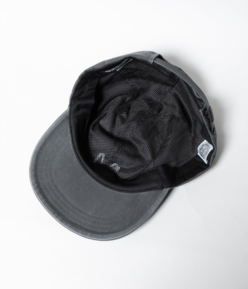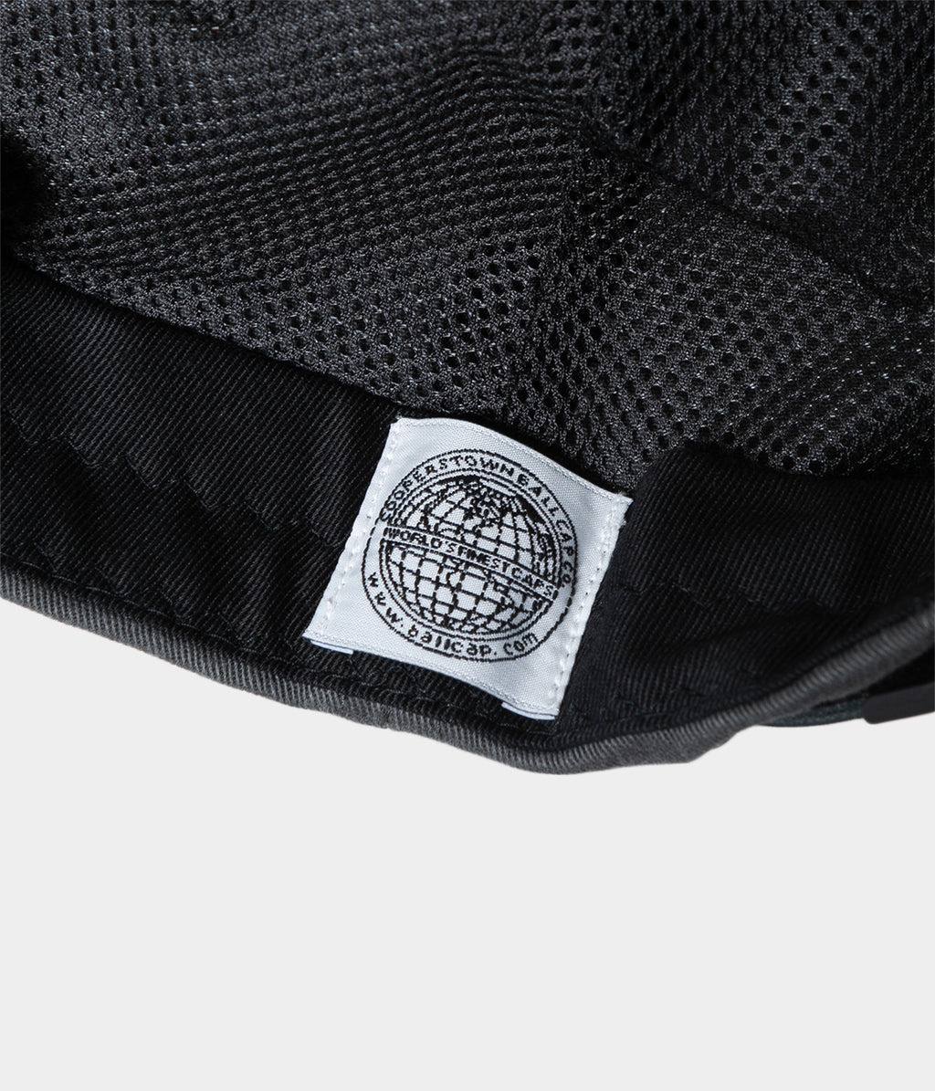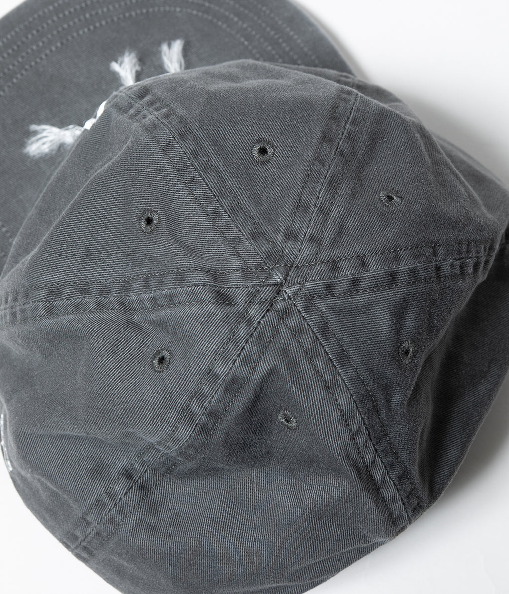 COOPERS TOWN BALL CAP(クーパーズタウンボールキャップ)とのコラボレーションキャップ。ベーシックなチノクロスをベースに染料で染めた後に、黒の顔料でオーバーダイした生地を製品バイオウォッシュし、程よいダメージ感を出した6パネルキャップ。