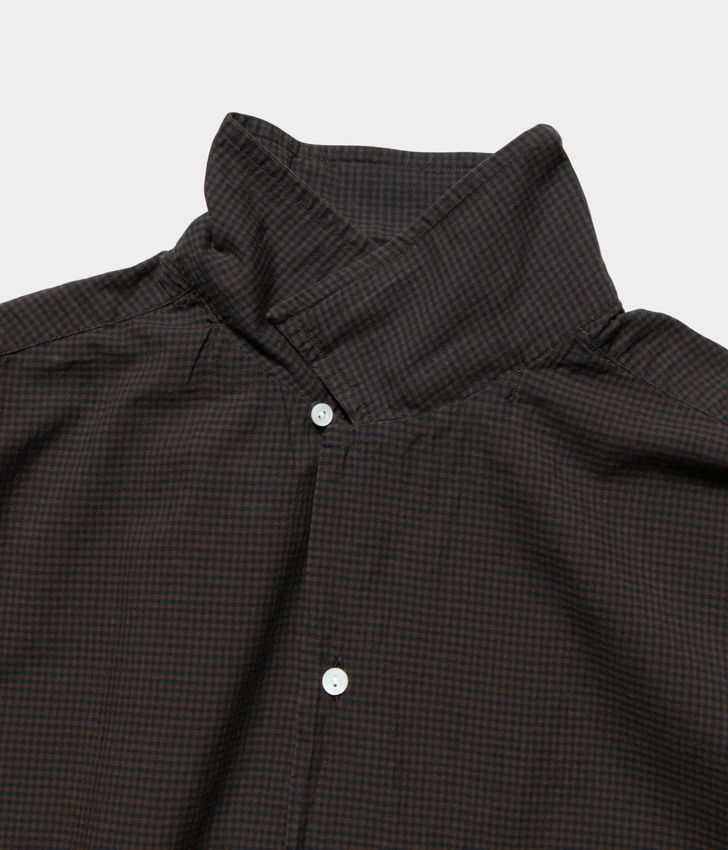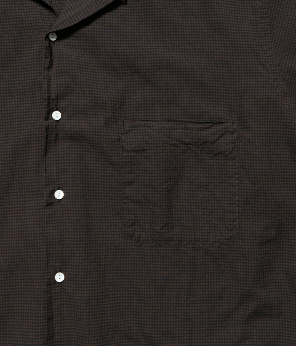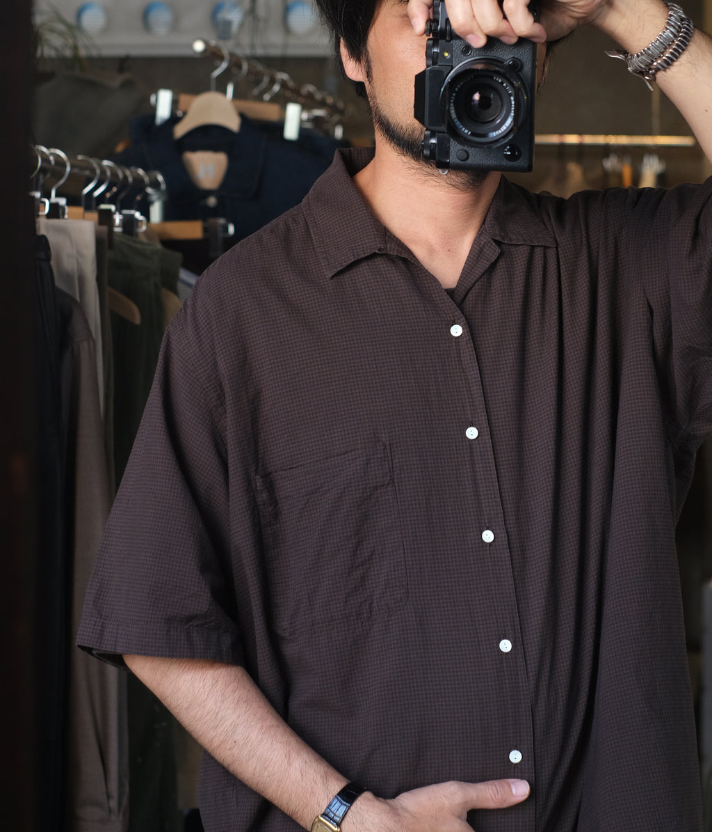 コットンシルクのローンチェック生地を使用したオープンカラーシャツ。