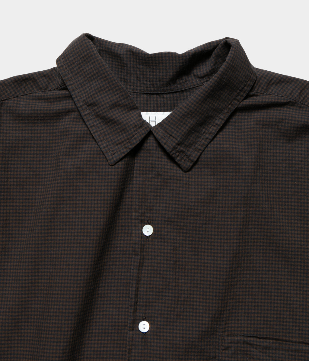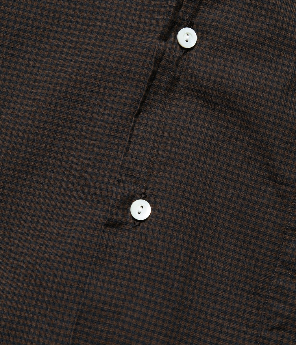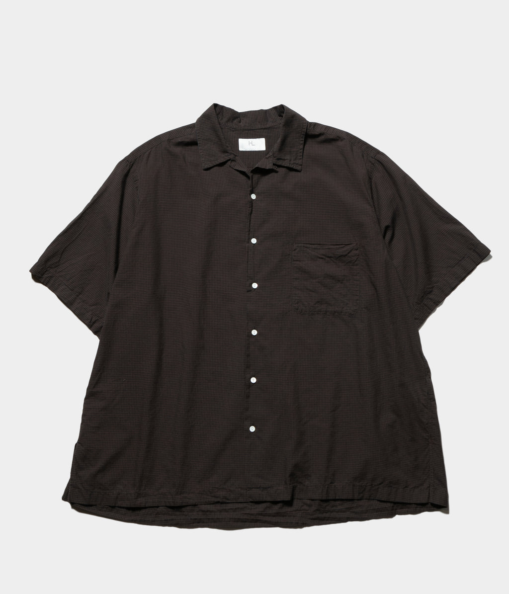 コットンシルクのローンチェック生地を使用したオープンカラーシャツ。