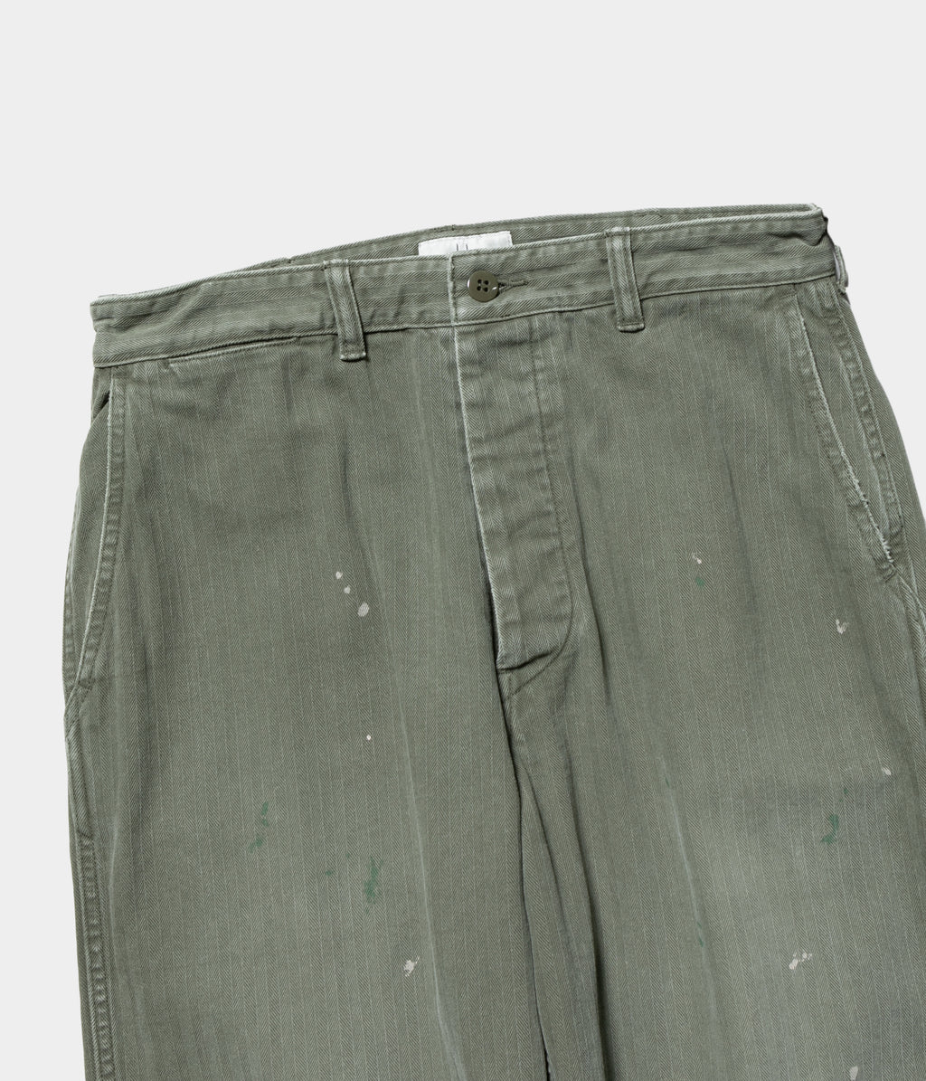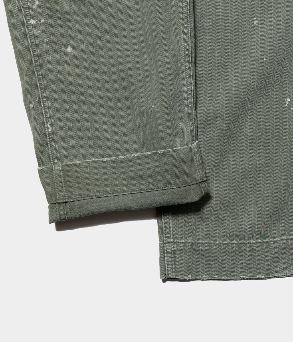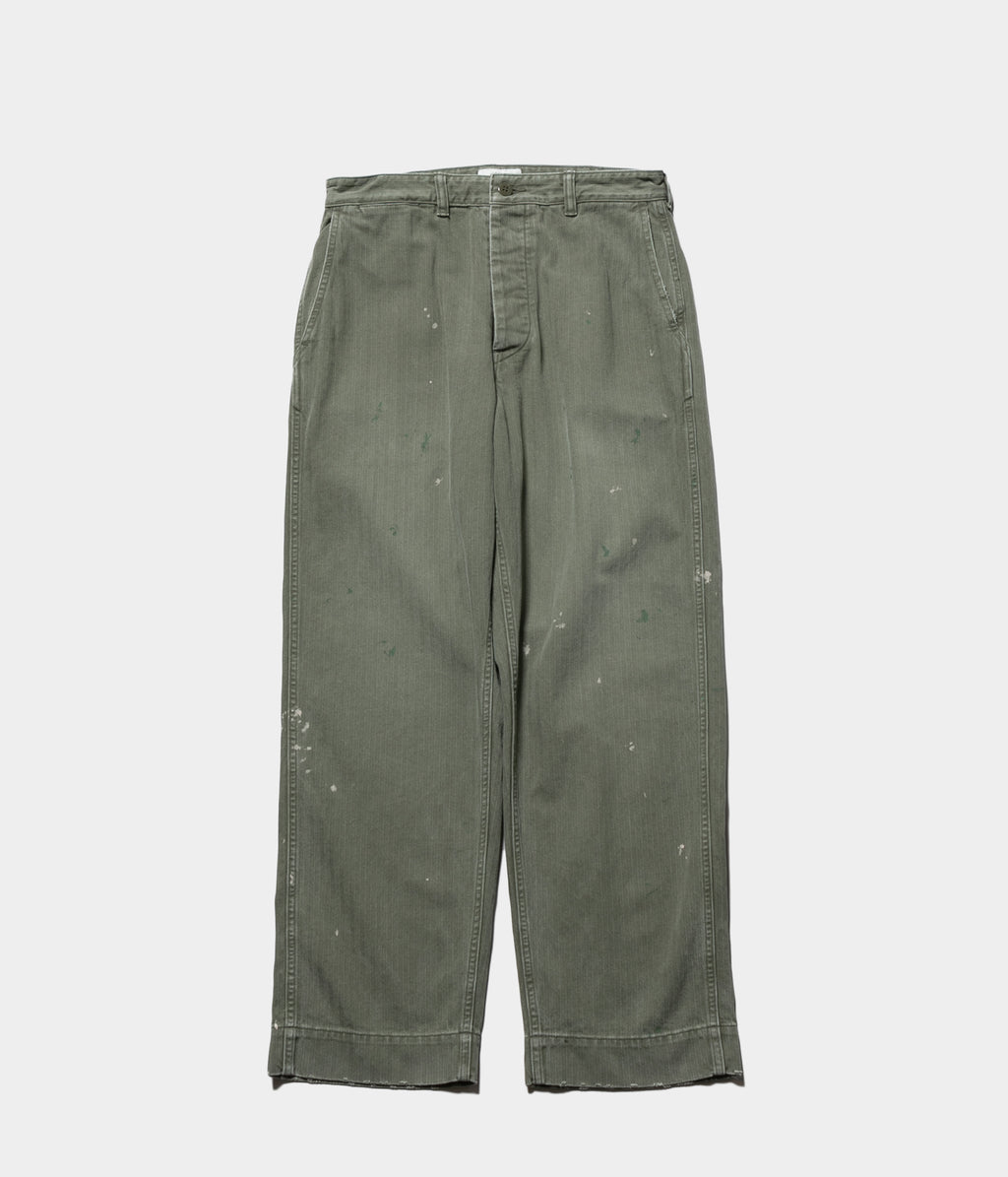 ヴィンテージ加工とペイントが施されており、加工をしながら洗いをかけているのでアタリが全体にありヴィンテージのような風合いです。