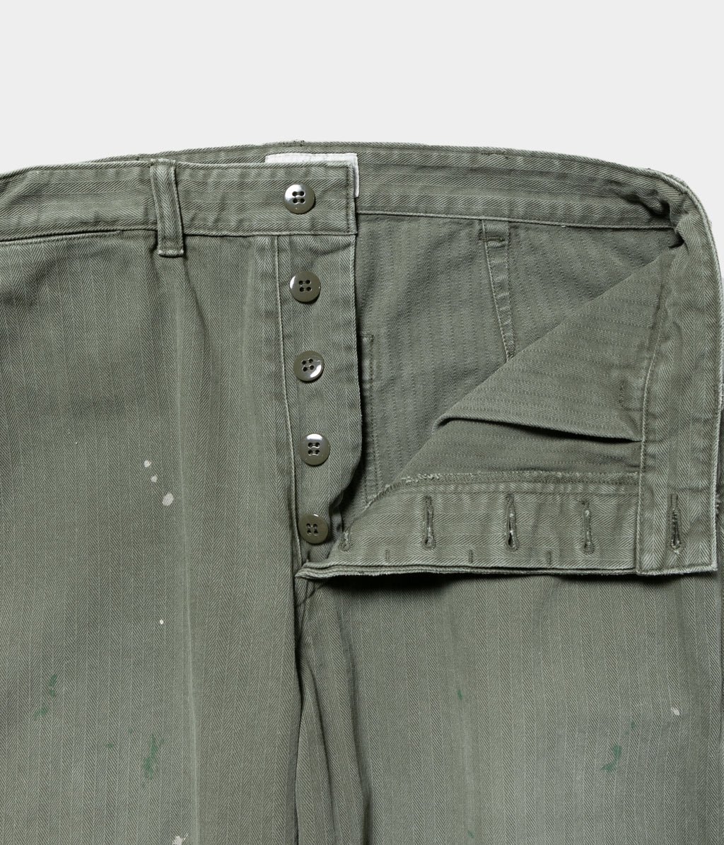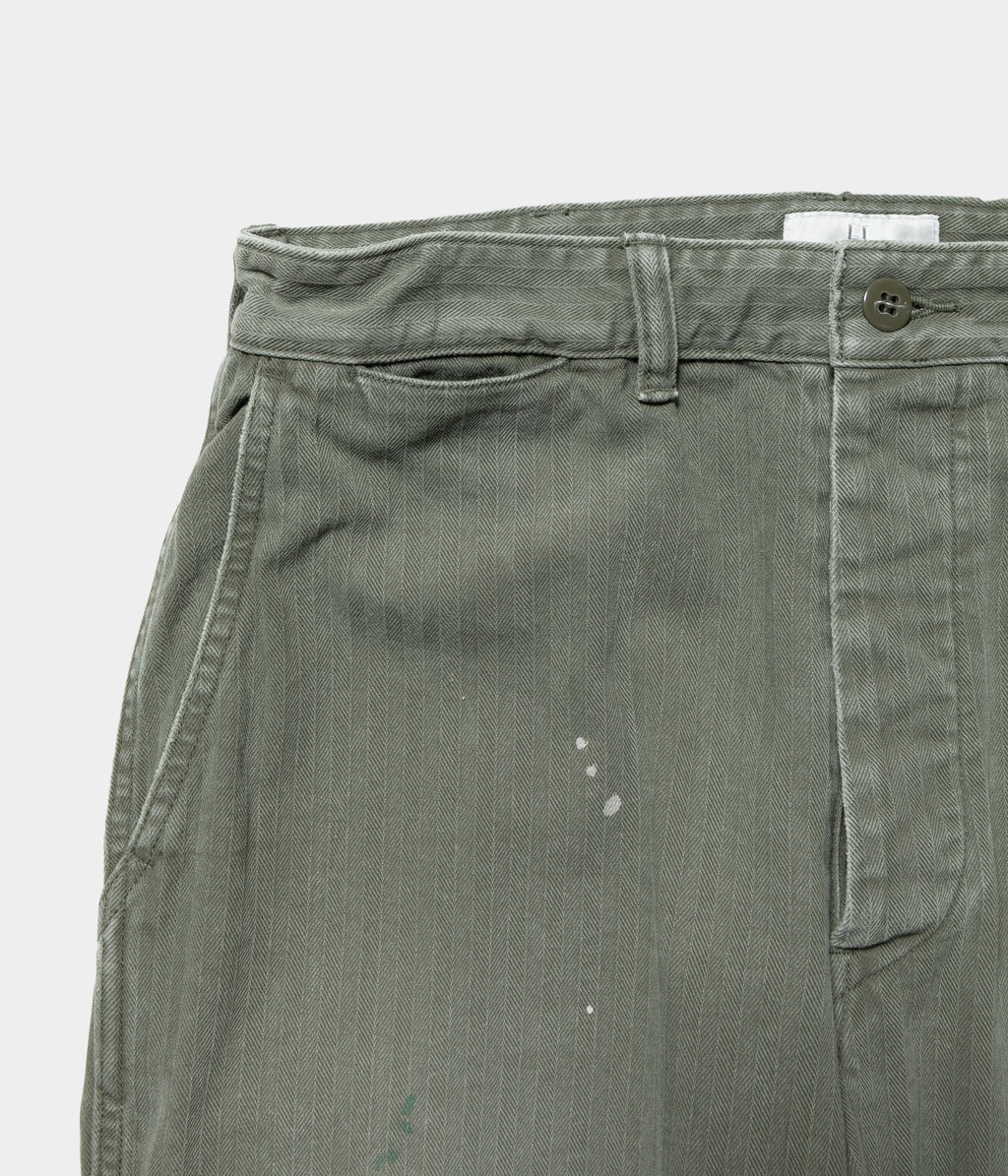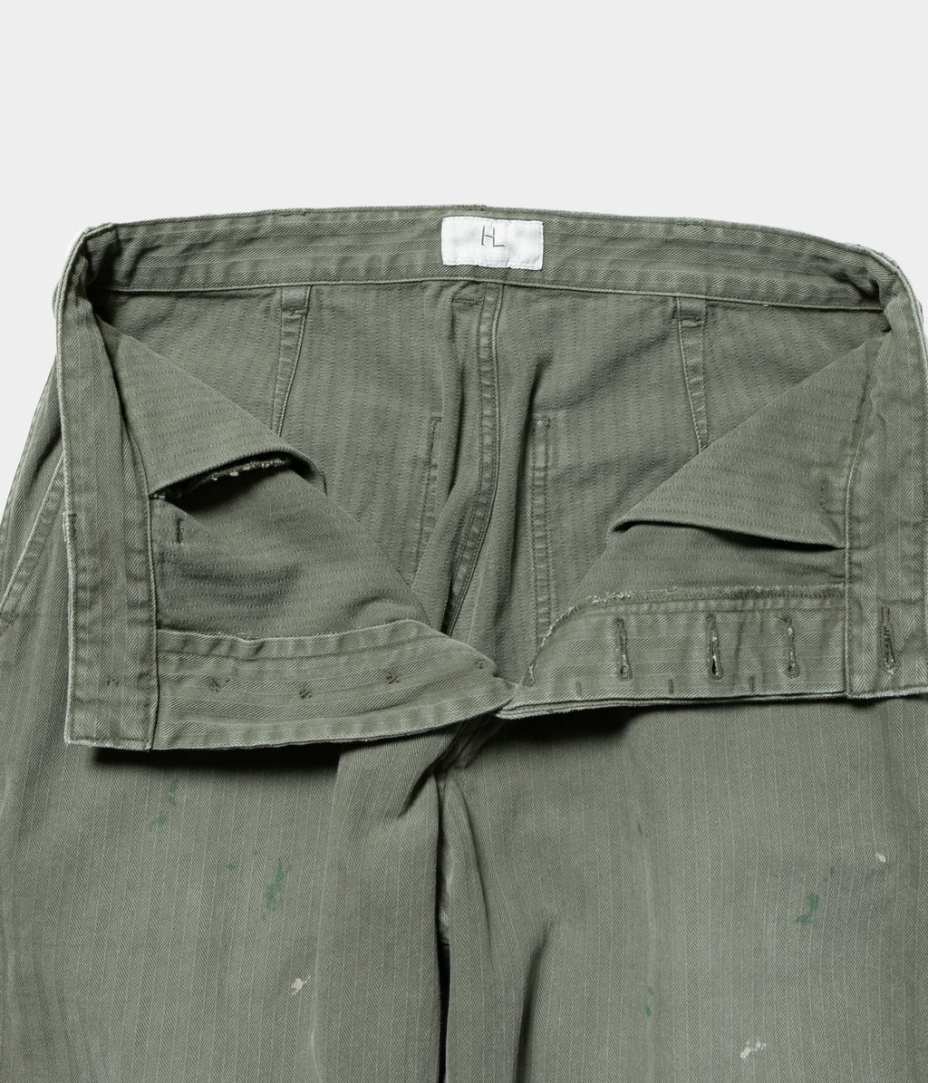 ヴィンテージ加工とペイントが施されており、加工をしながら洗いをかけているのでアタリが全体にありヴィンテージのような風合いです。