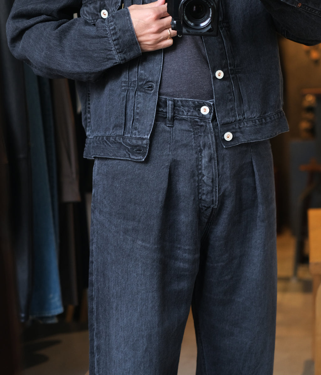 1タックの入った太めのシルエットが特徴で、タック部分はステッチが入っているのでクリースが崩れにくい仕様となっています。
