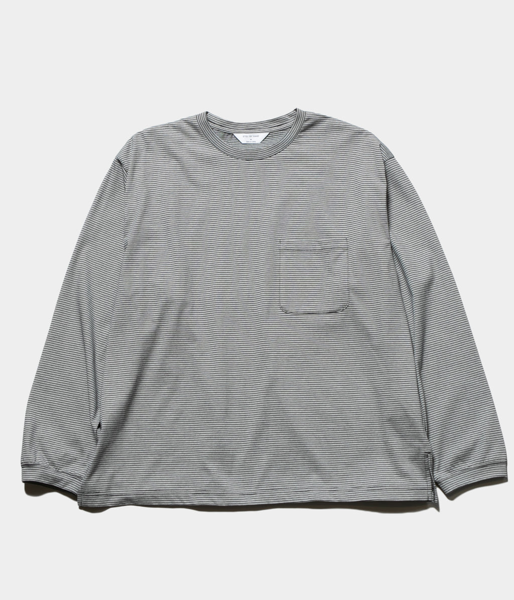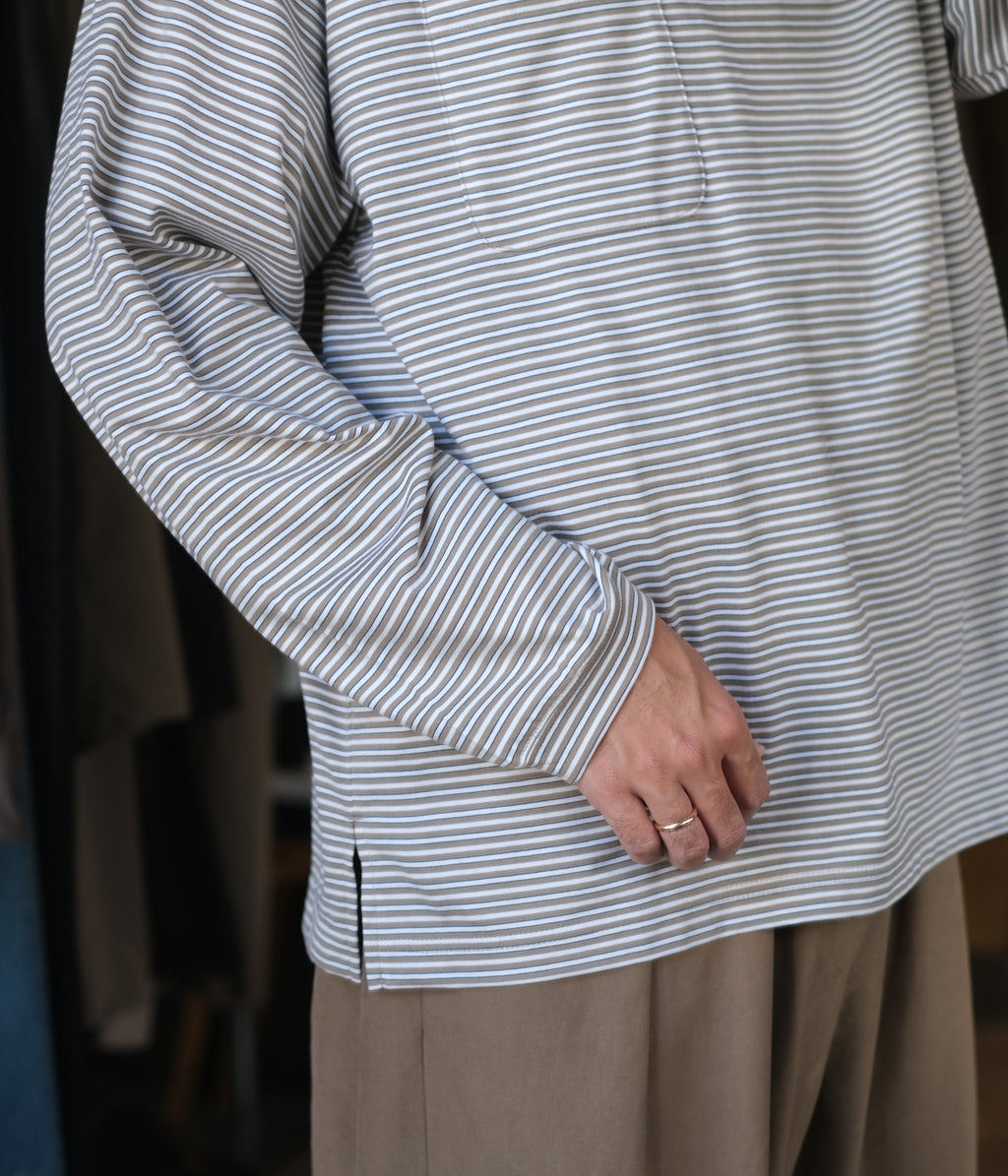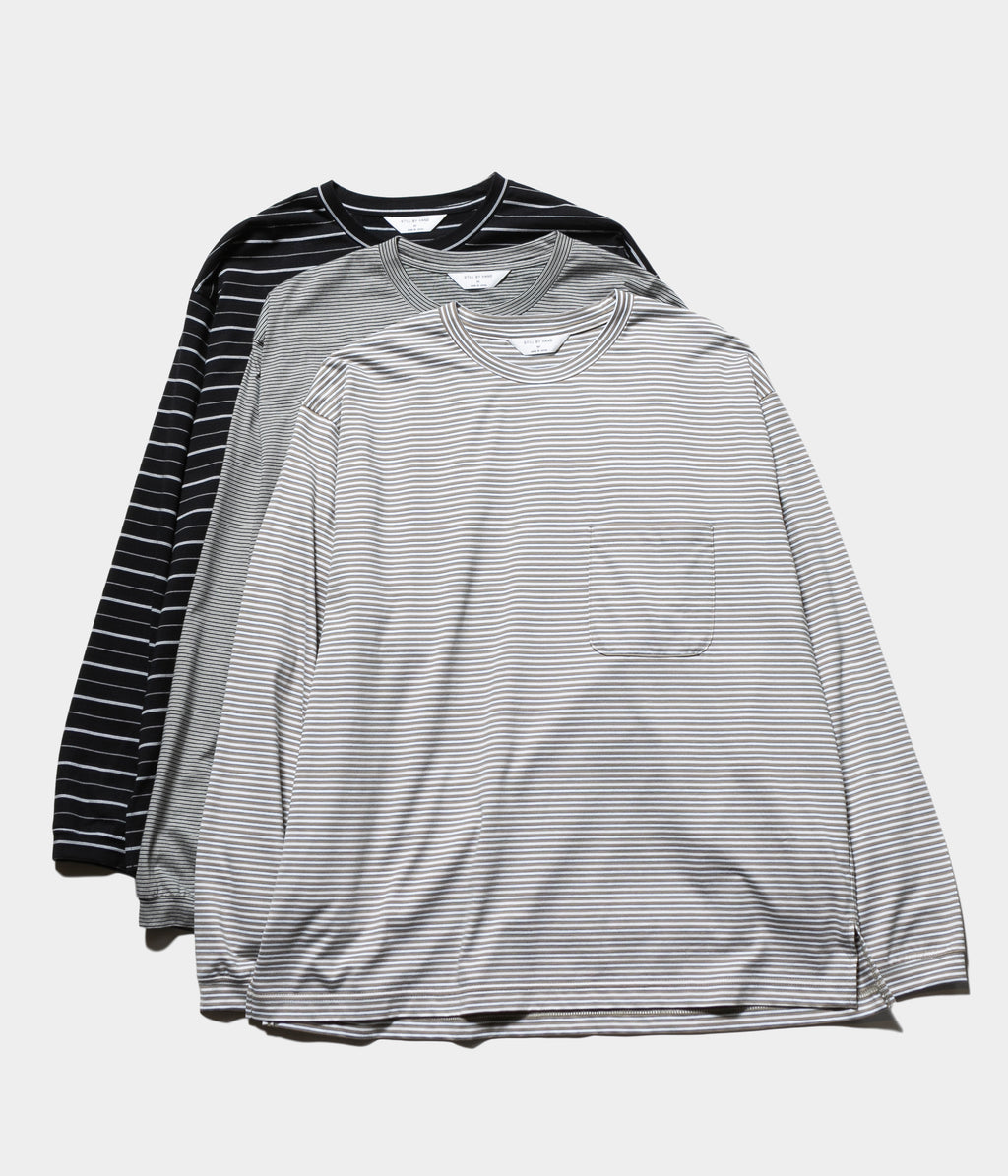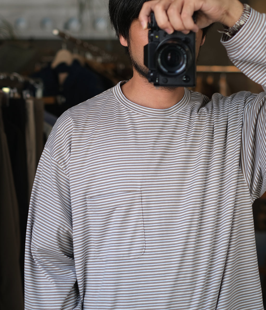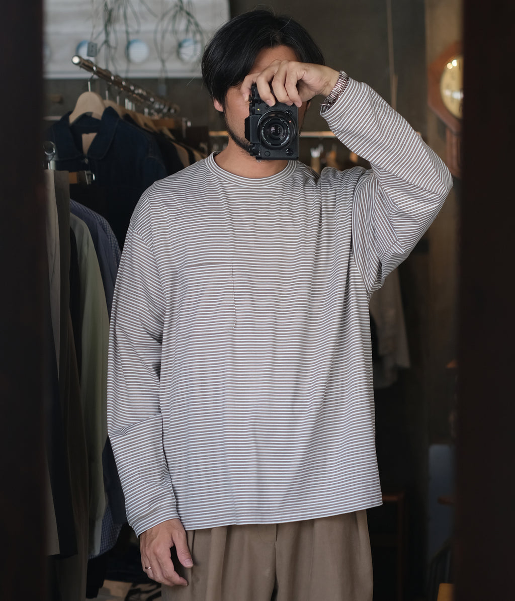 コンパクト糸を使用し、尾州で製作したオリジナルのボーダー素材のロングスリーブカットソー。