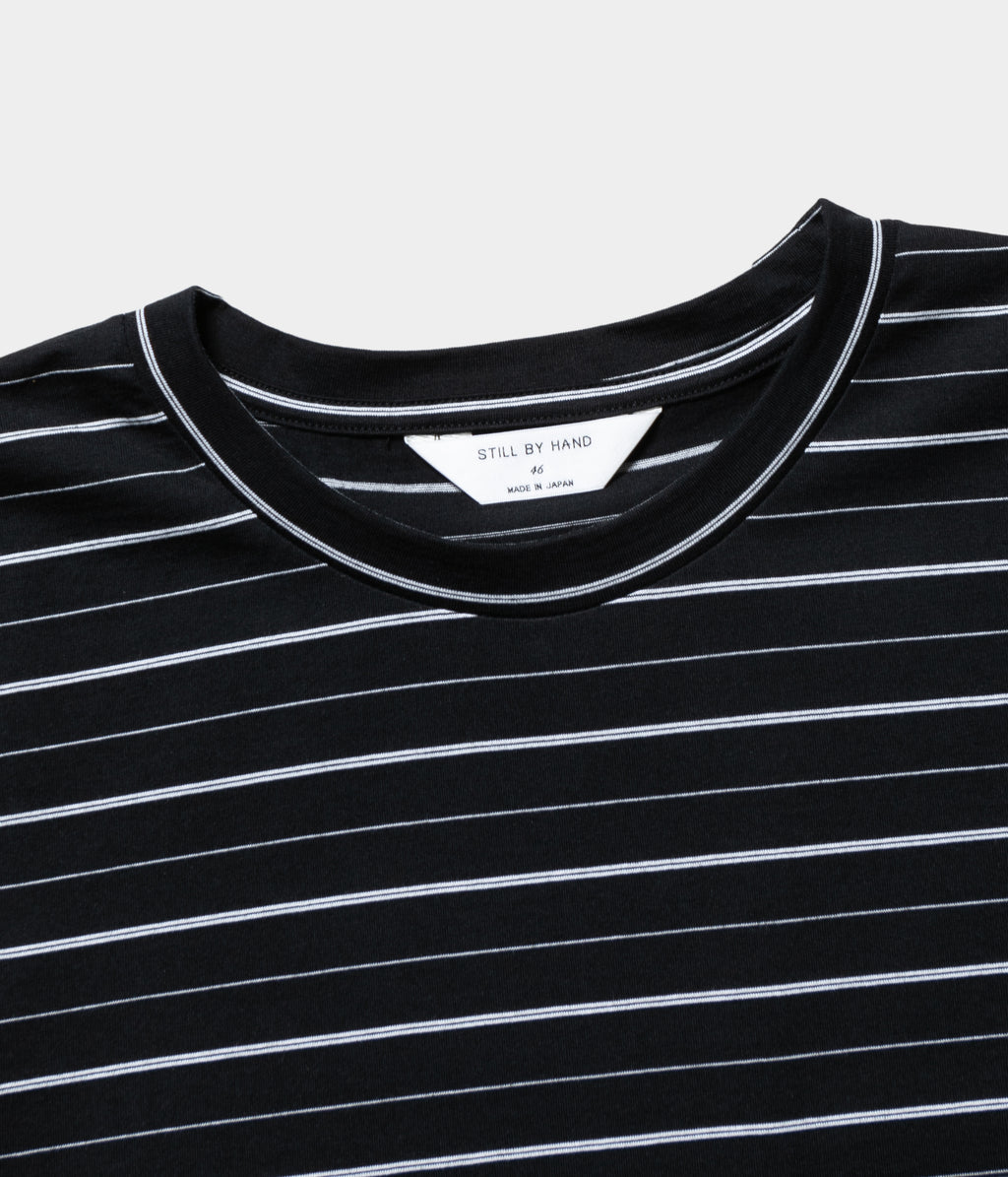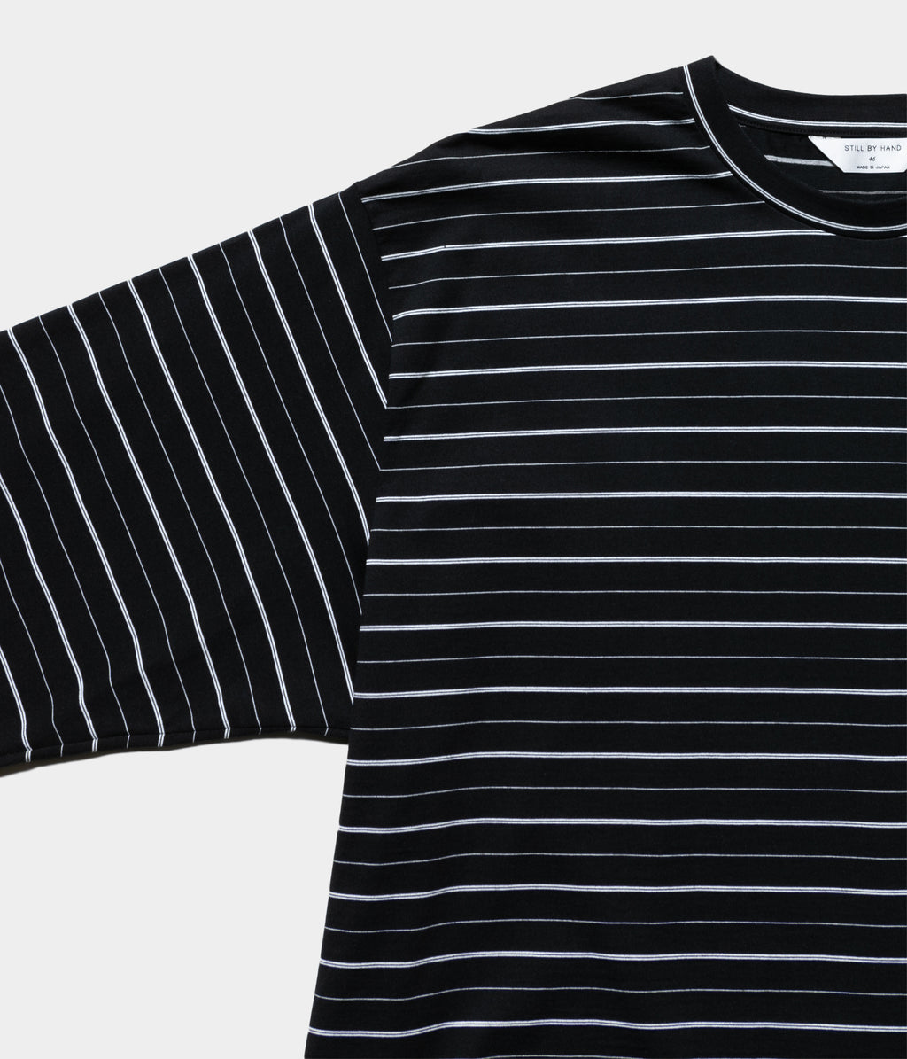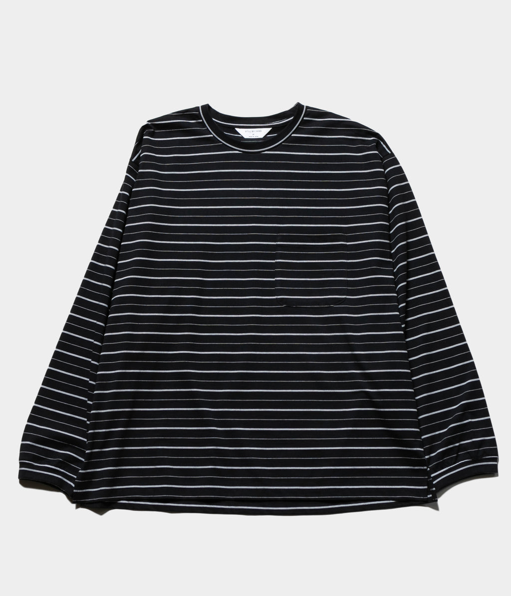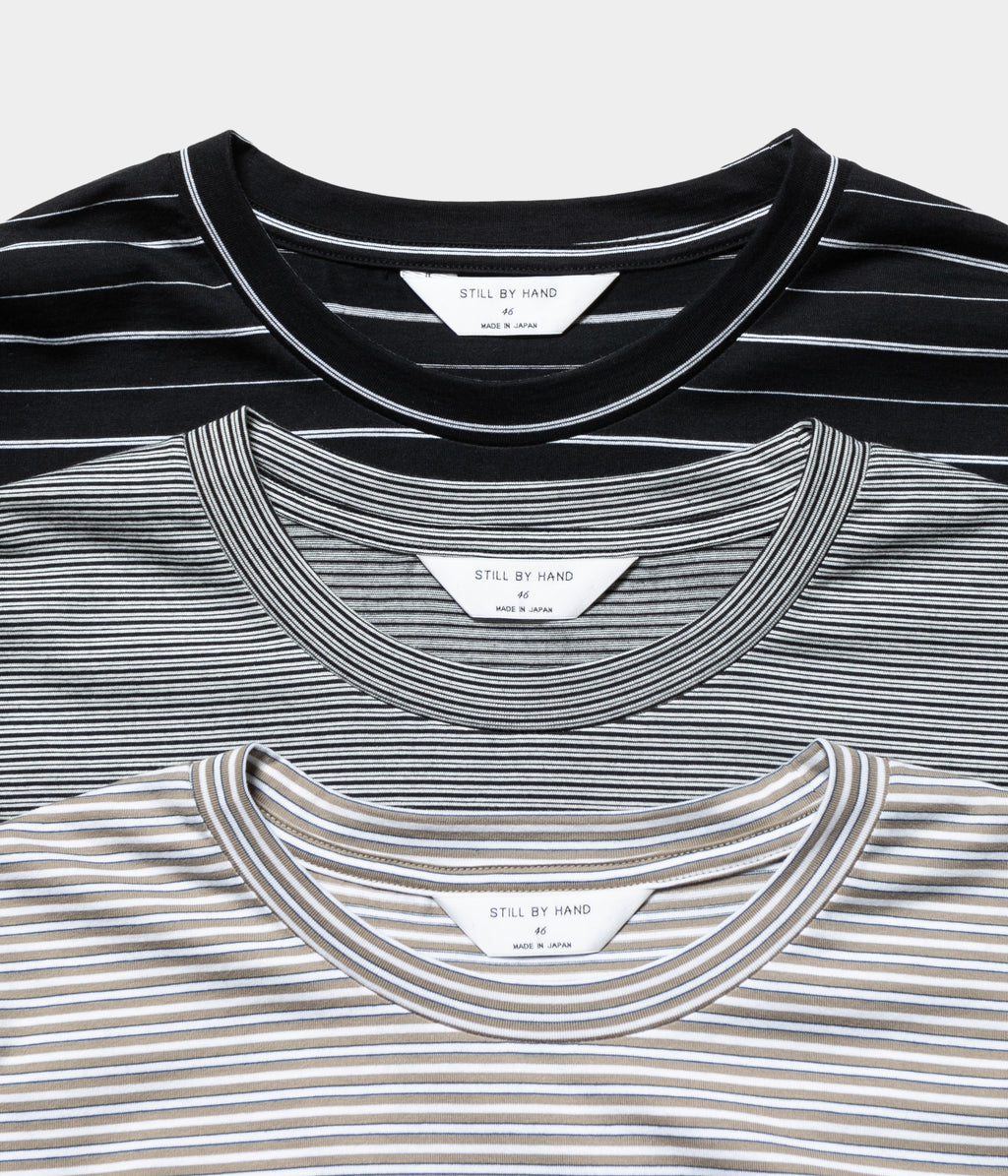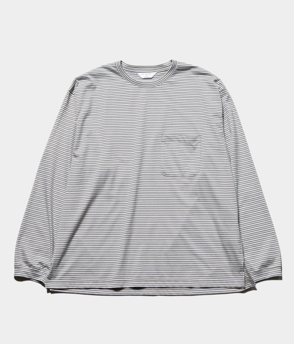 コンパクト糸を使用し、尾州で製作したオリジナルのボーダー素材のロングスリーブカットソー。