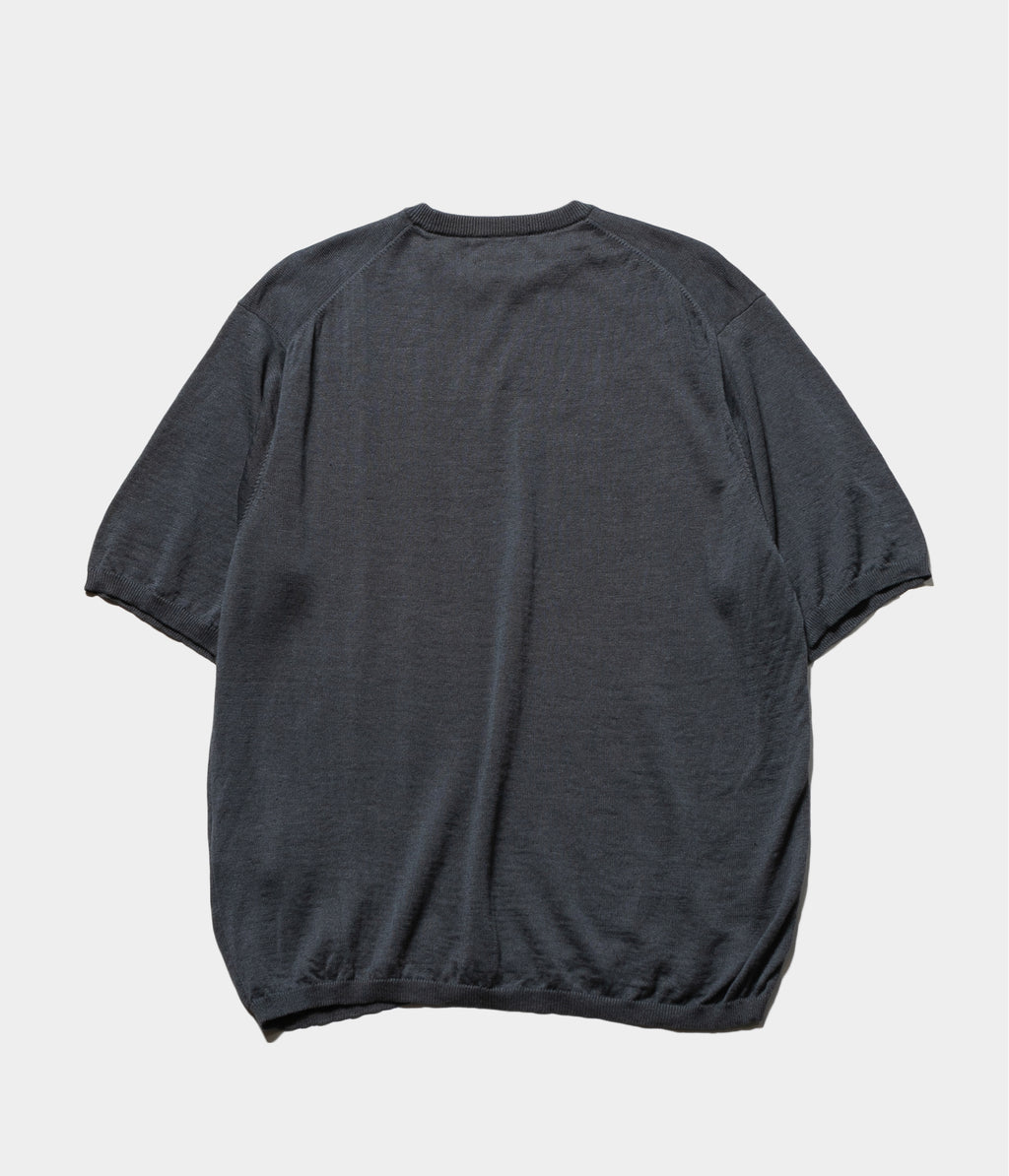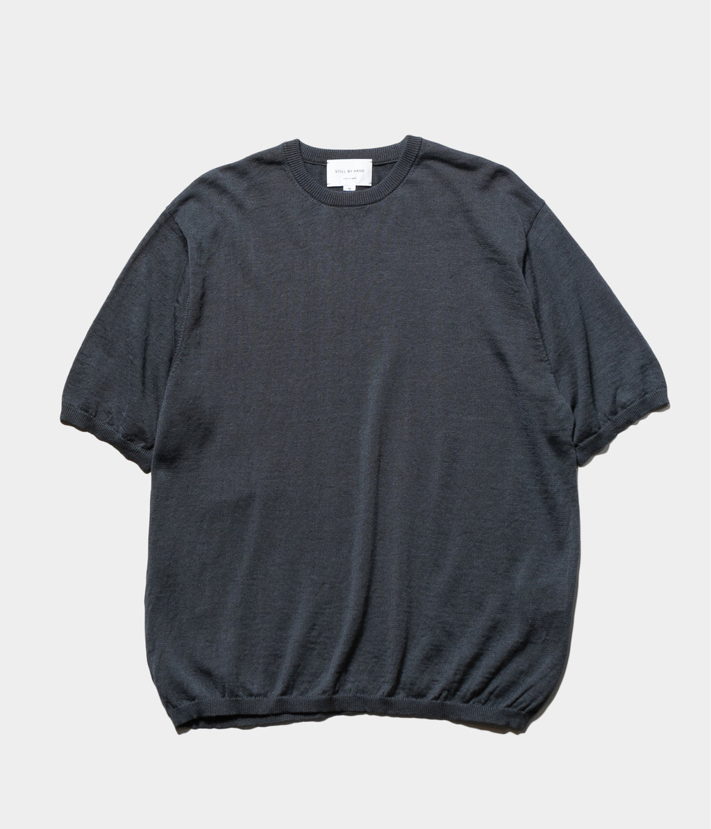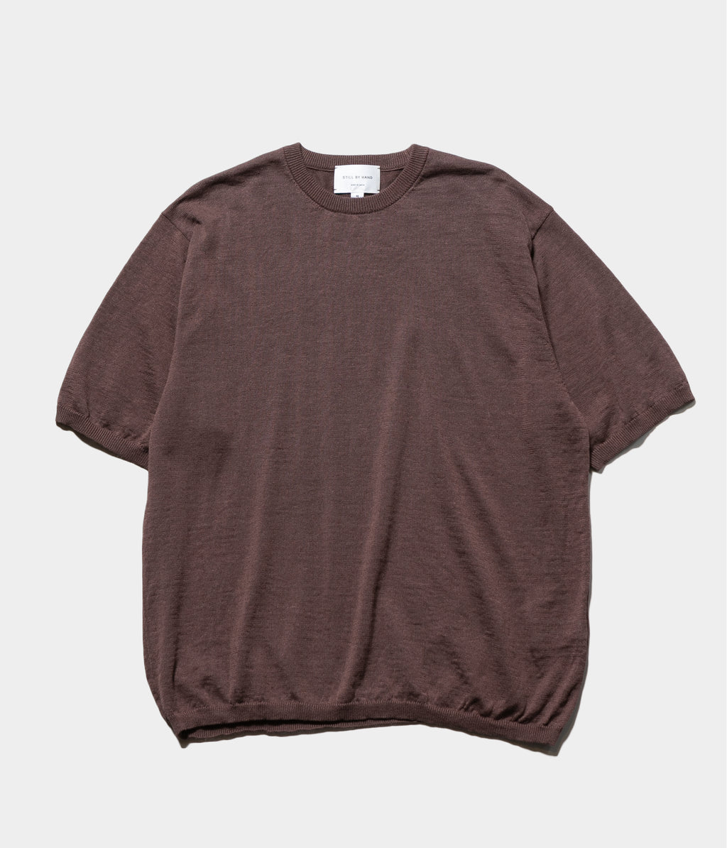 リネン高混率の混紡糸をオリジナルカラーで染色したセットインスリーブのニットTです。