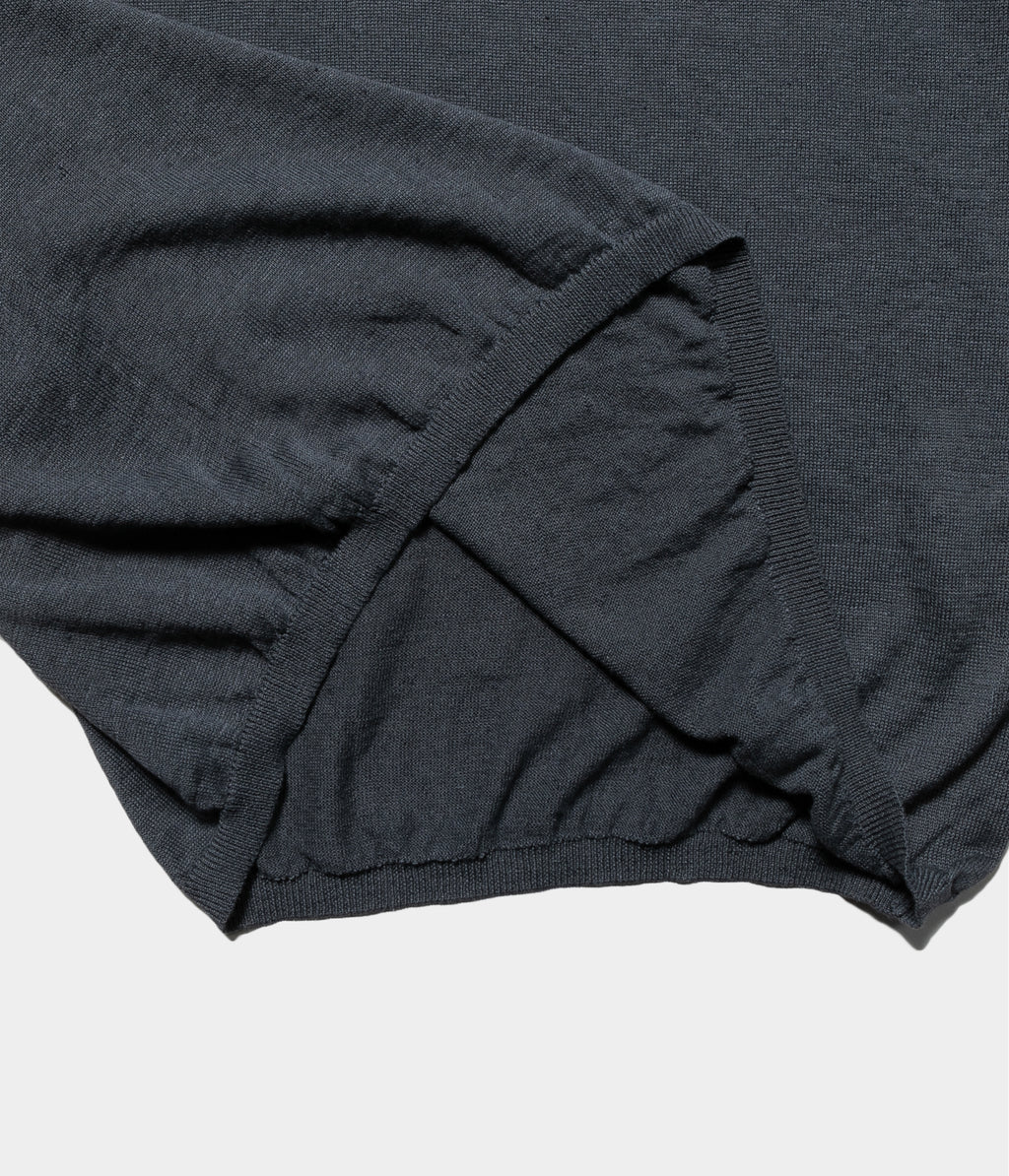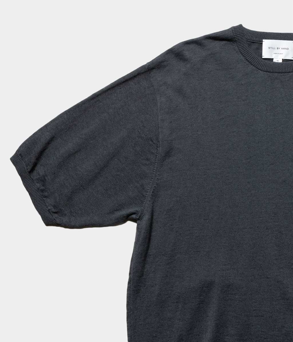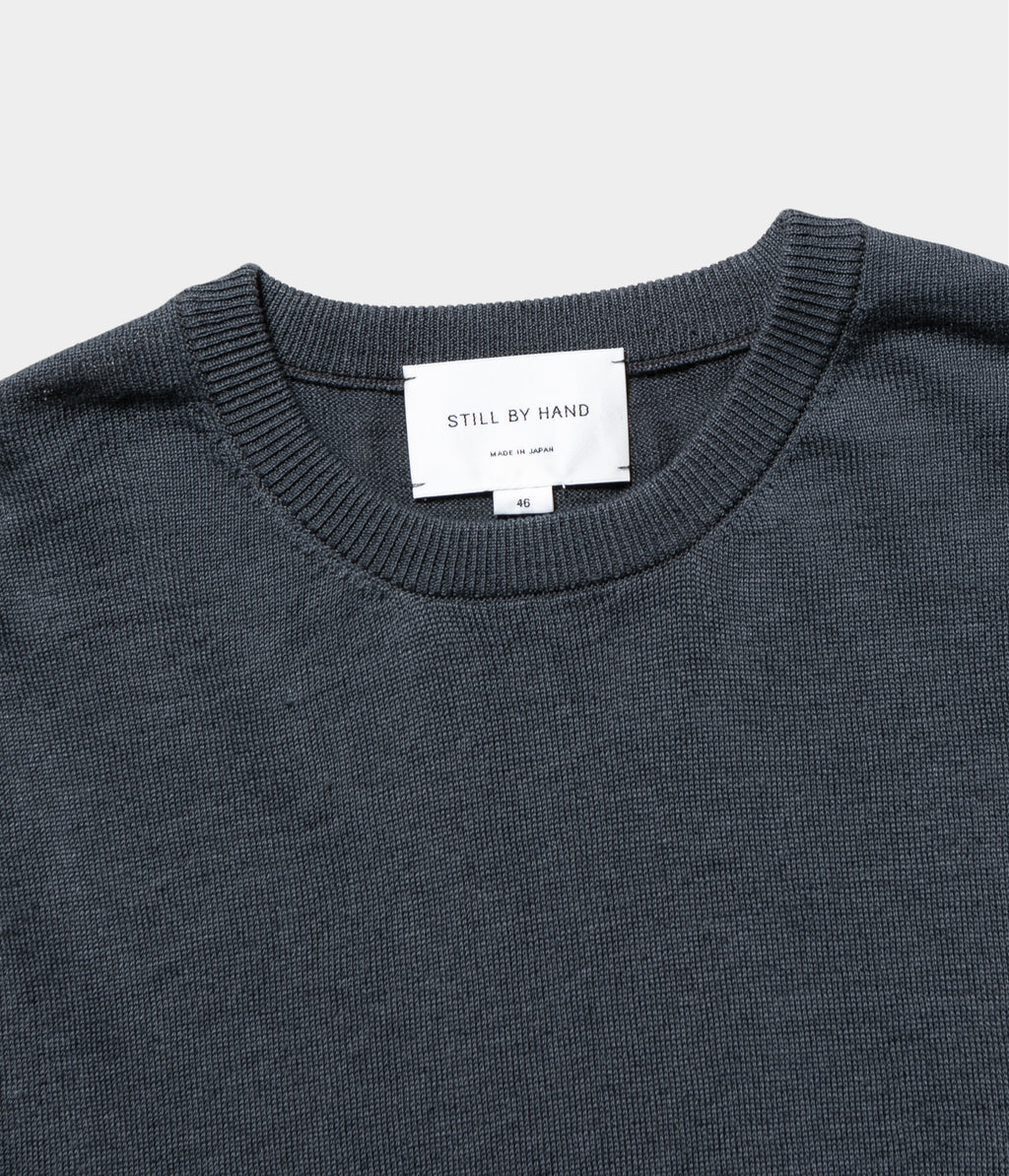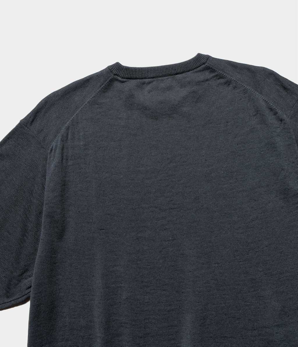 リネン高混率の混紡糸をオリジナルカラーで染色したセットインスリーブのニットTです。